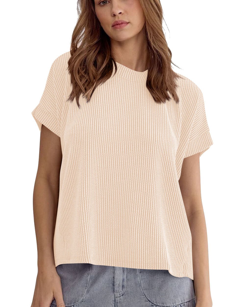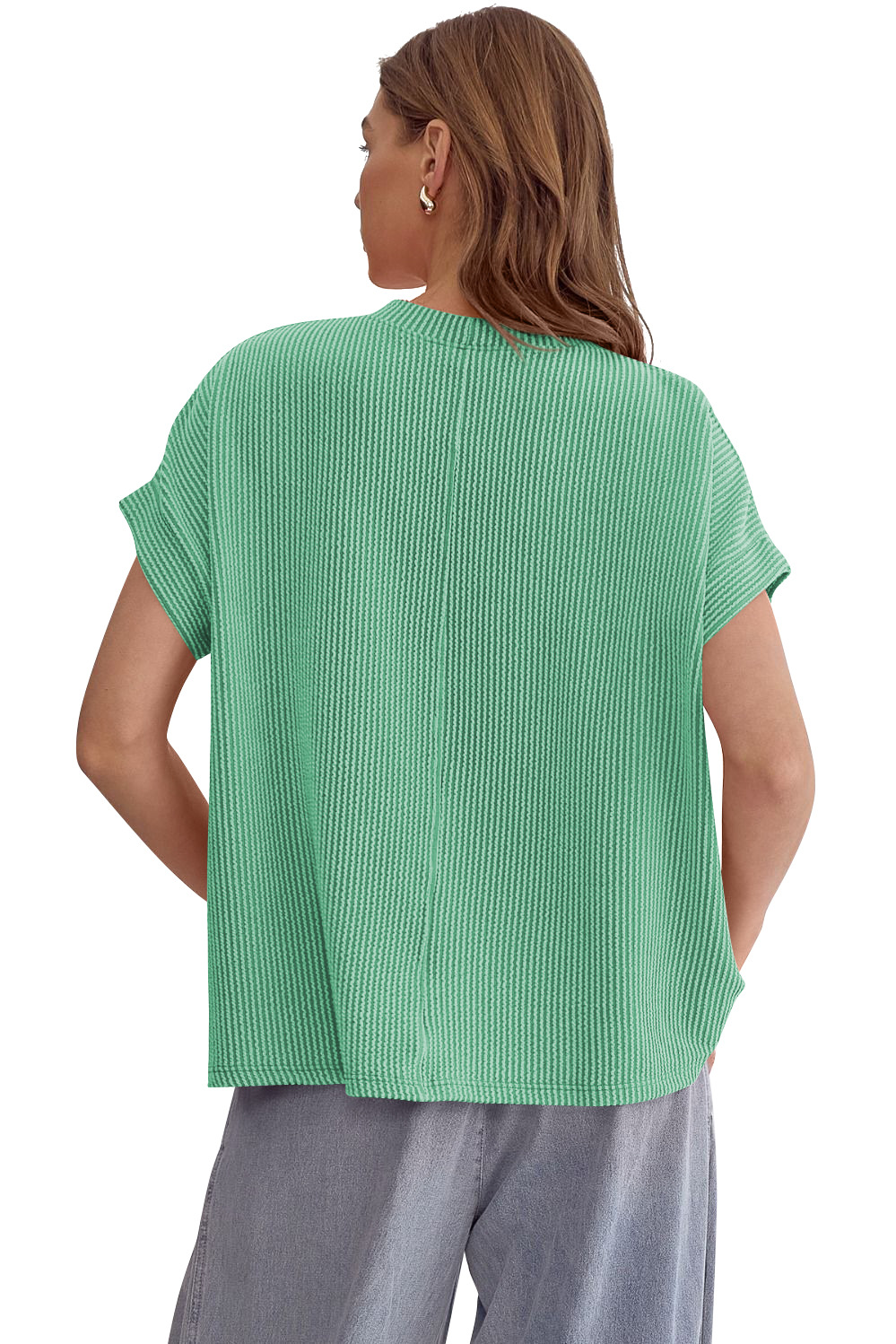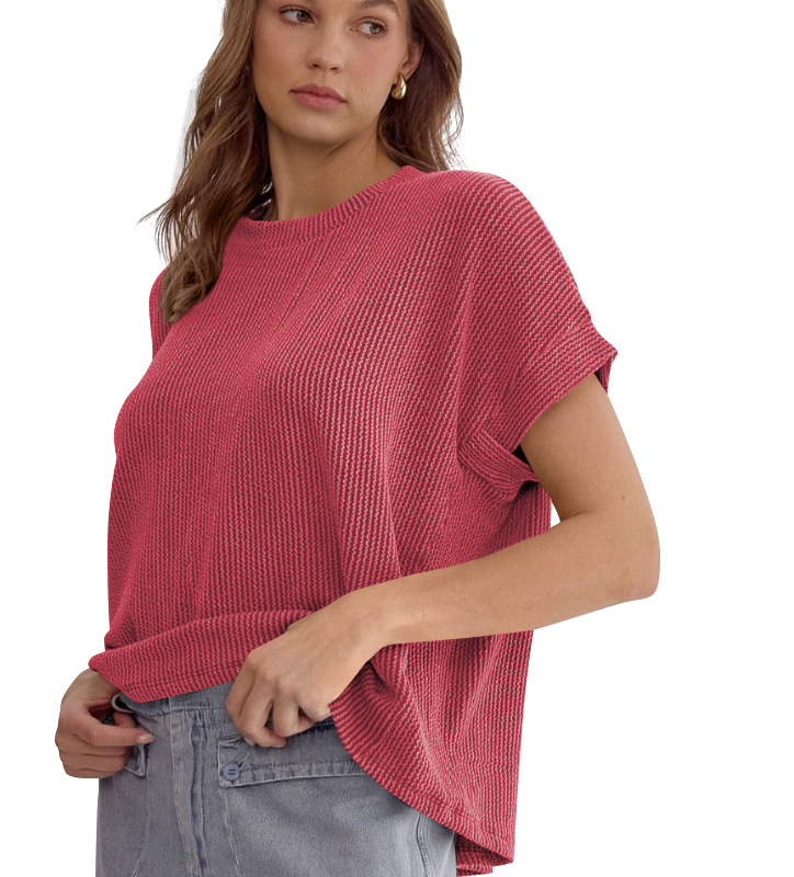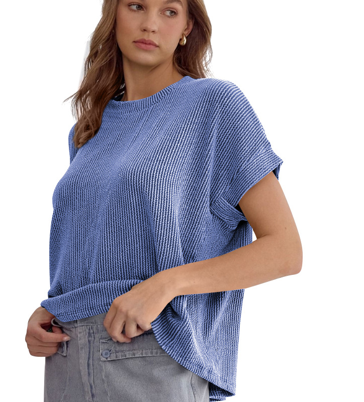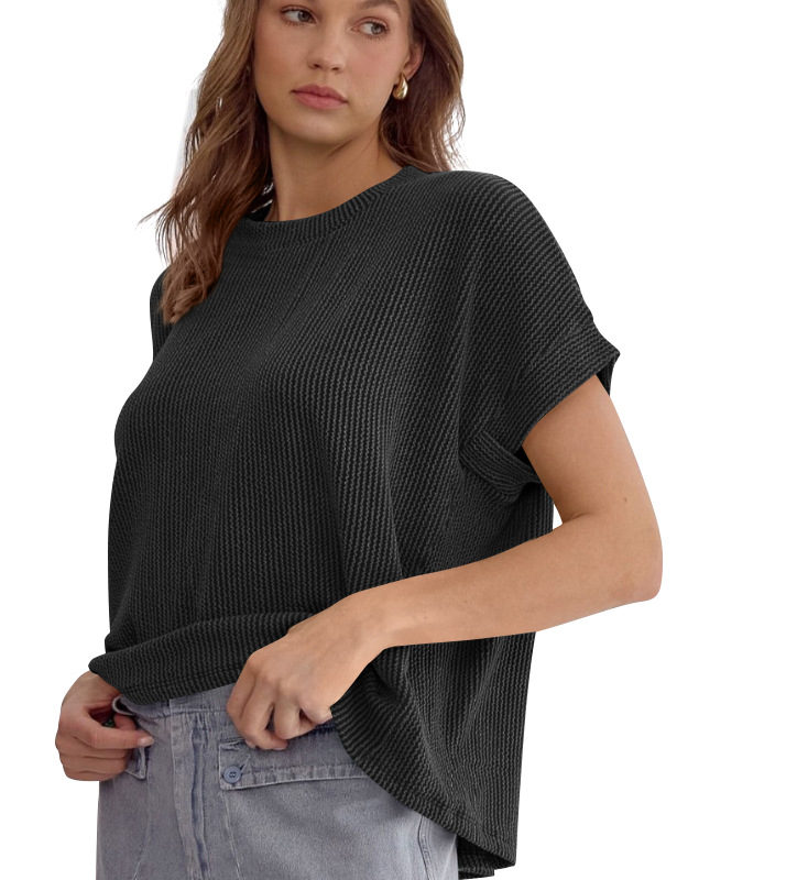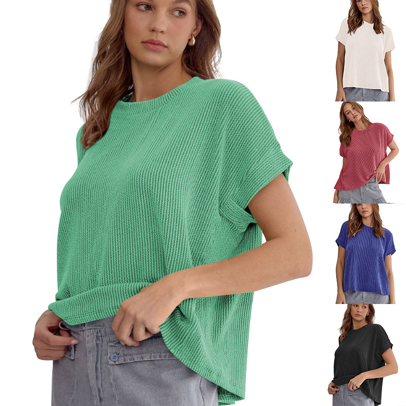 Style: PulloverSleeve length: Short sleeveVersion type: Loose typeLength: Medium lengthCollar type: round neckSleeve type: Bat sleeveFabric: Polyester