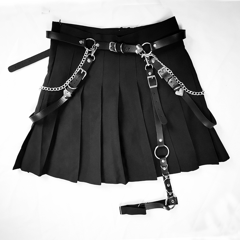 Style: belt, leg ringStyle: Ladies Punk BeltColour: BlackDimensions: Length: 110 cm/43.3 inches, width: 1.8 cm/0.7 inches (1 inch = 2.54 cm)Material: PU alloy