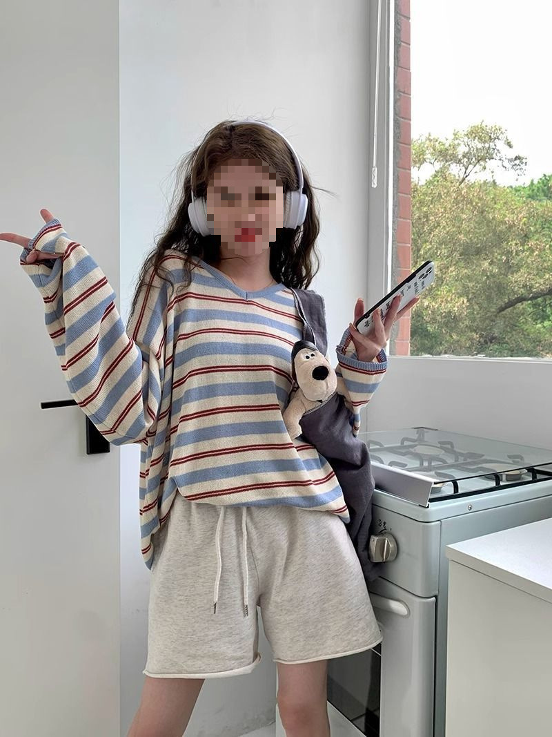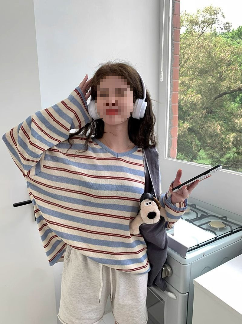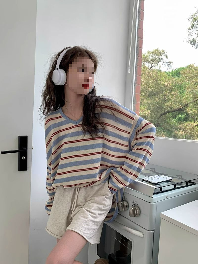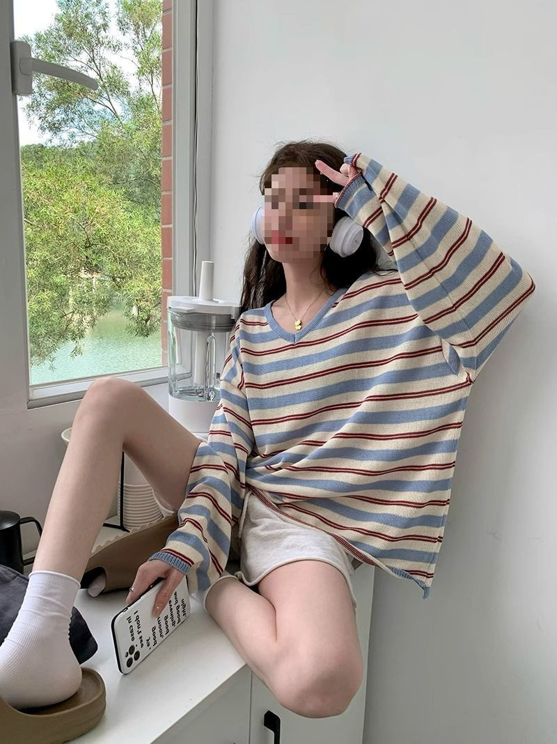 V-neck Loose Slimming Knitted Bottoming Shirt Top