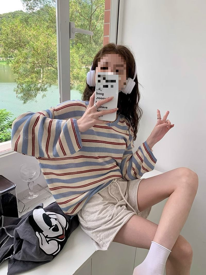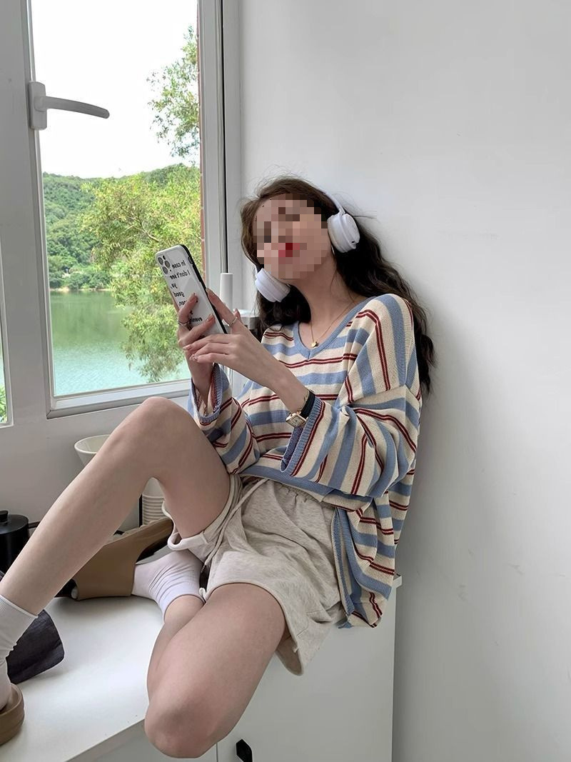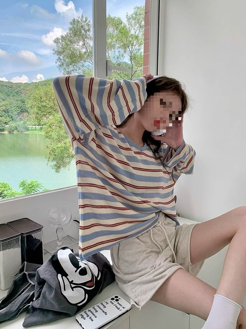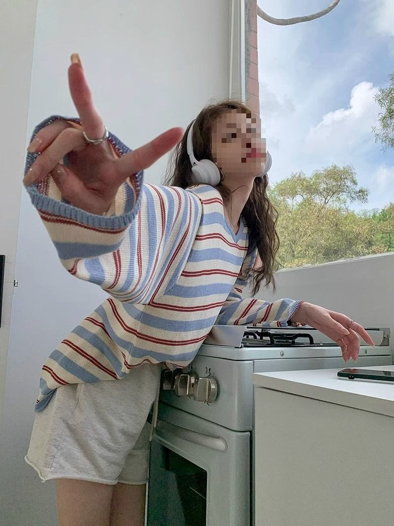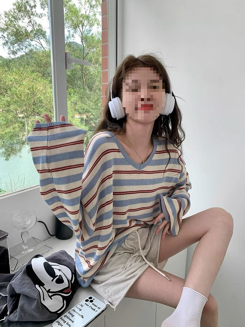 V-neck Loose Slimming Knitted Bottoming Shirt Top