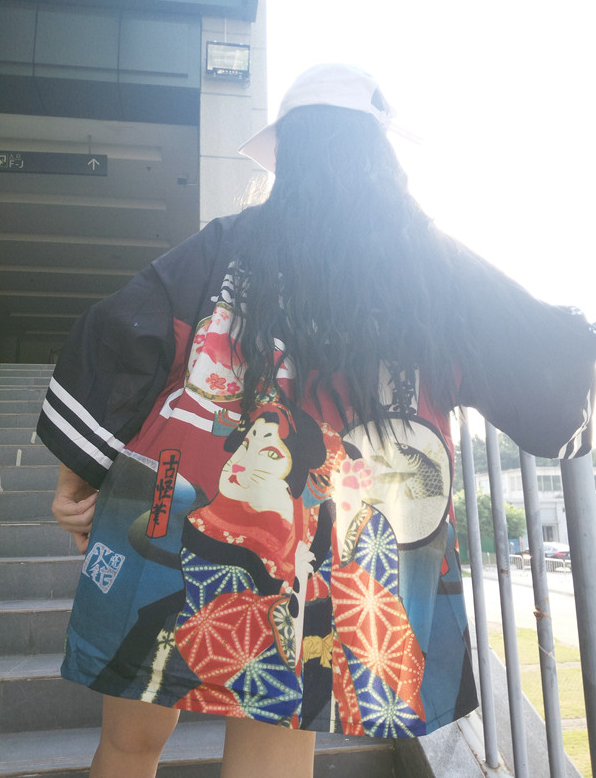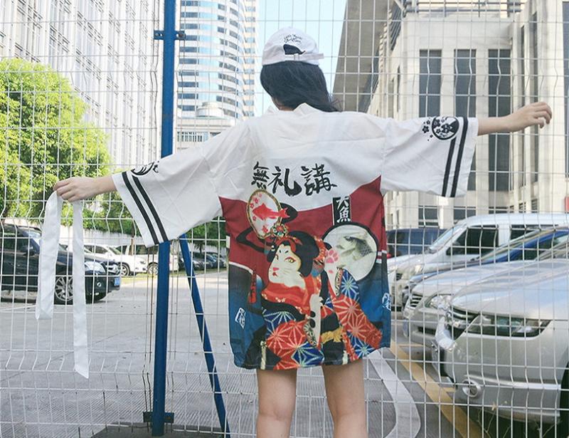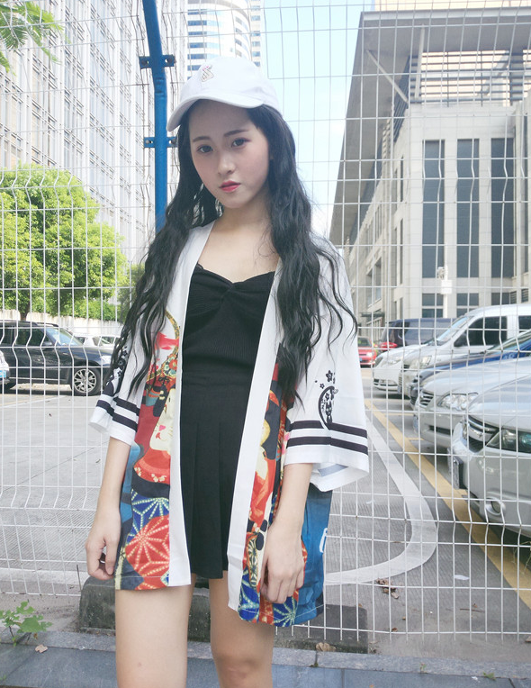 Harajuku women's Japanese kimono casual loose seven-point sleeve thin section sun protection clothing cardigan short coat