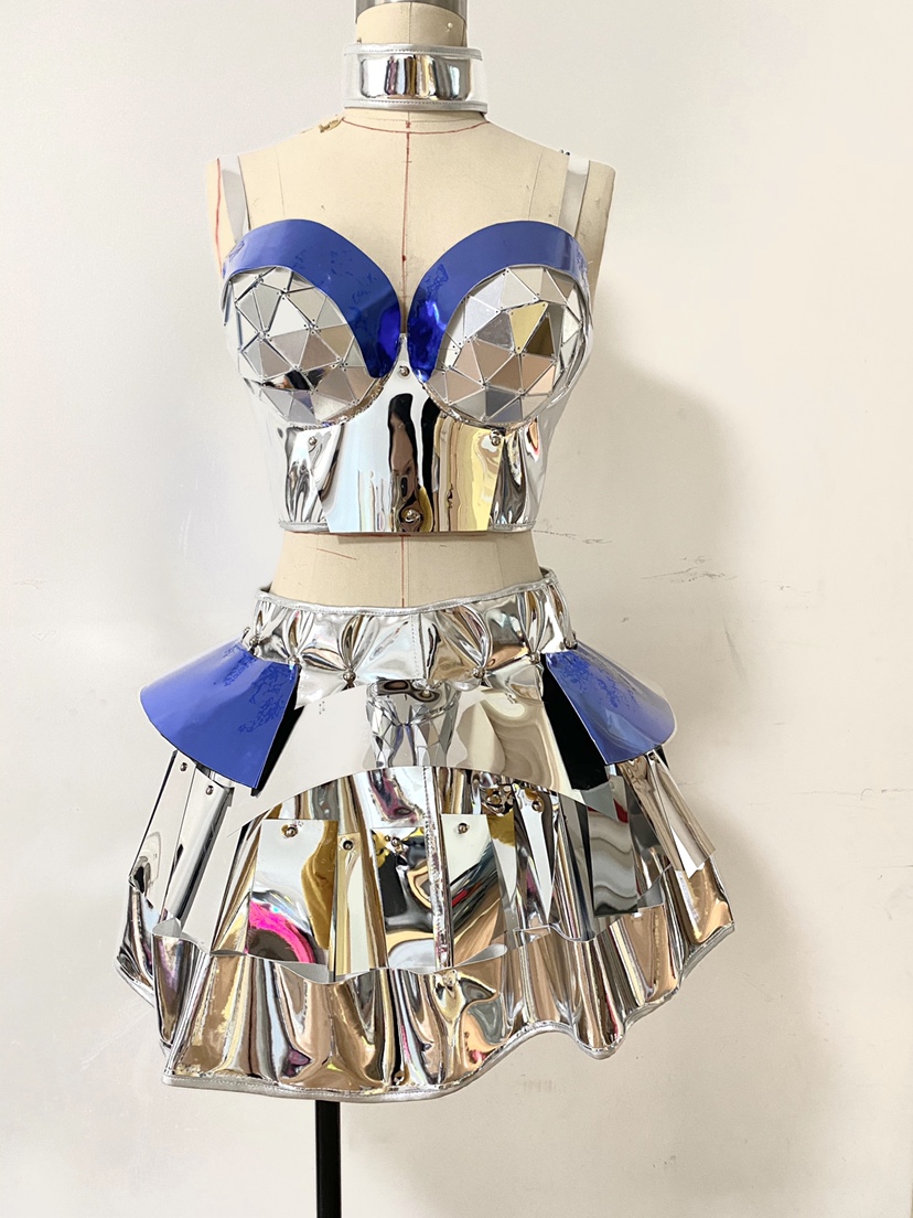 2Set: top*1+skirt*1+neck sleeve*1+a pair of sleeve sleeves*1
