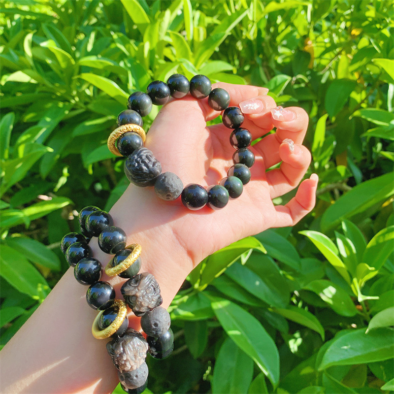 Product information:Processing Technology: manual Color: Black Applicable people: Unisex Style: Unisex Material: Obsidian Purity: 12mm Style: Original design