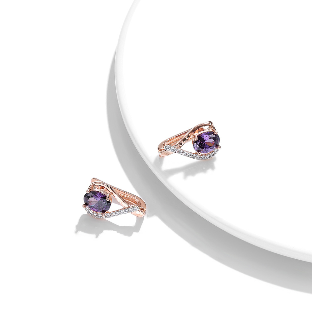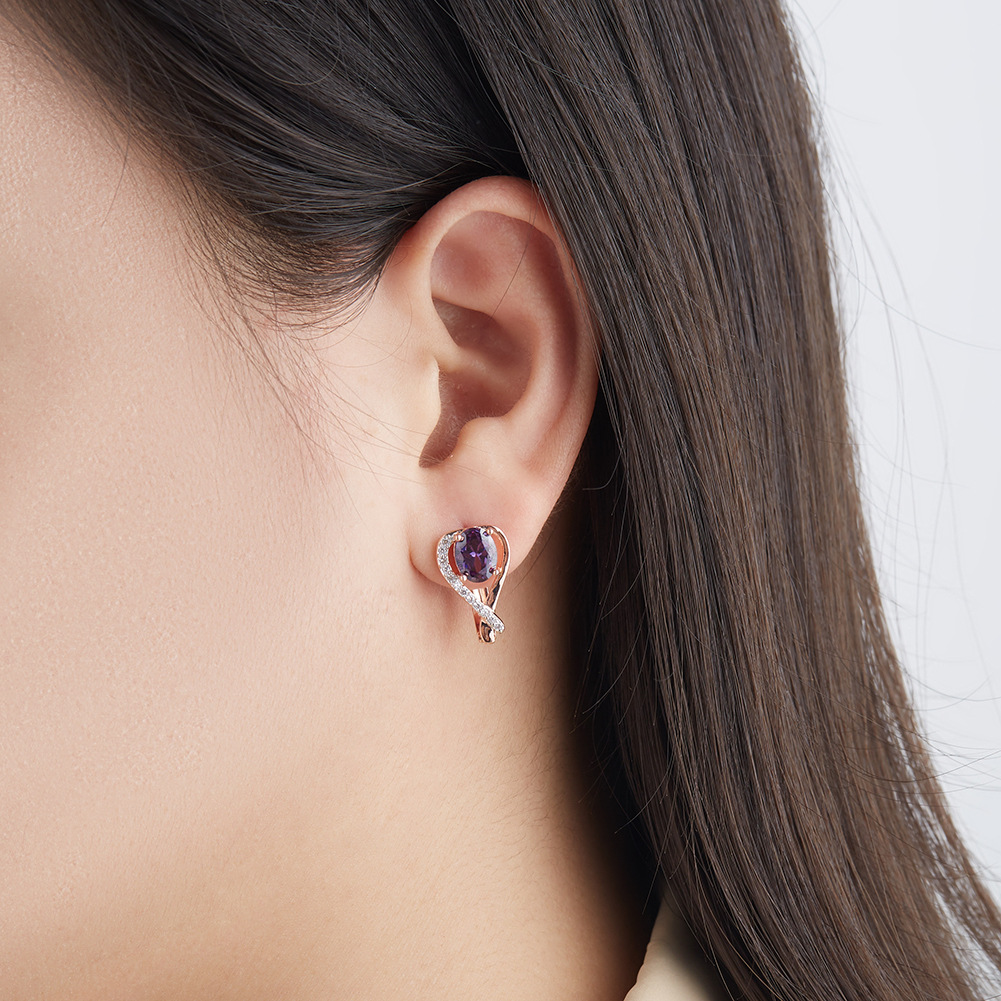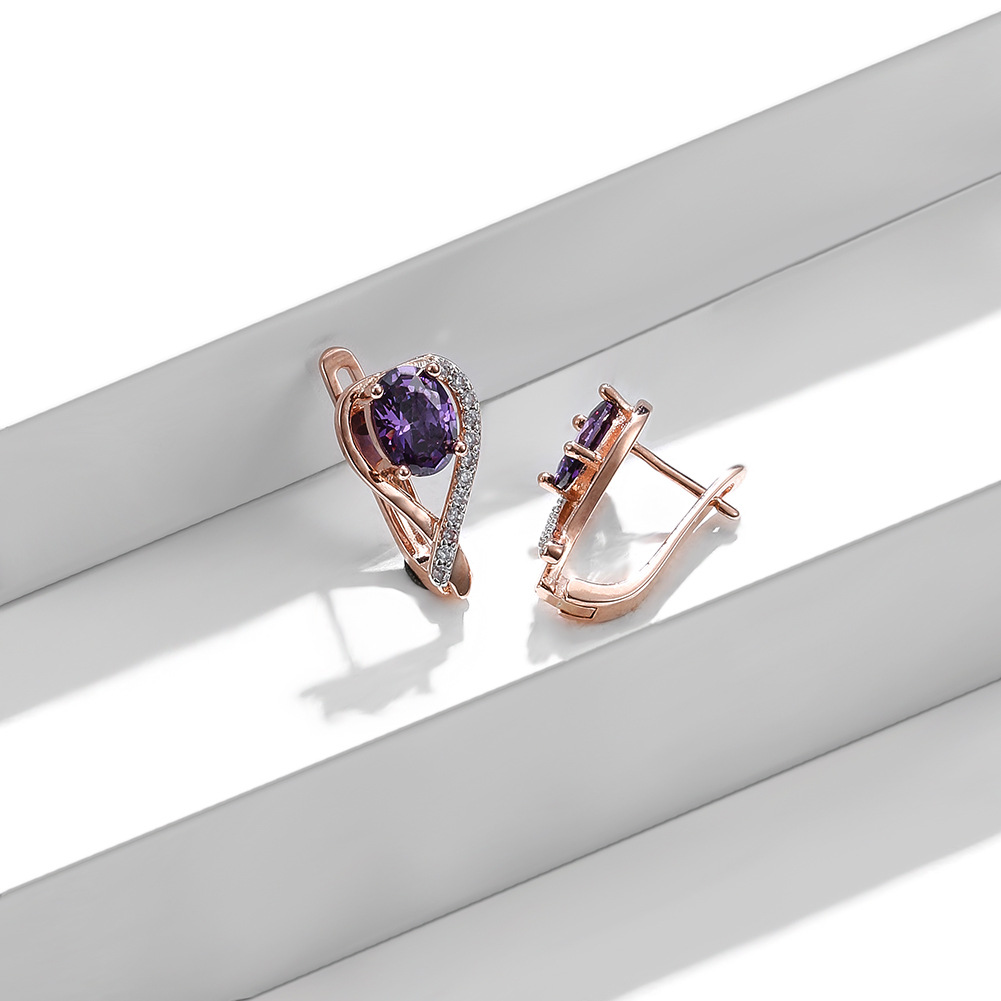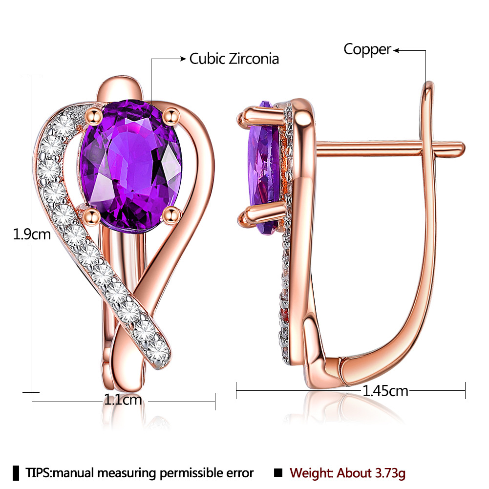 European and American Love Peach-shaped Purple Zircon Earrings