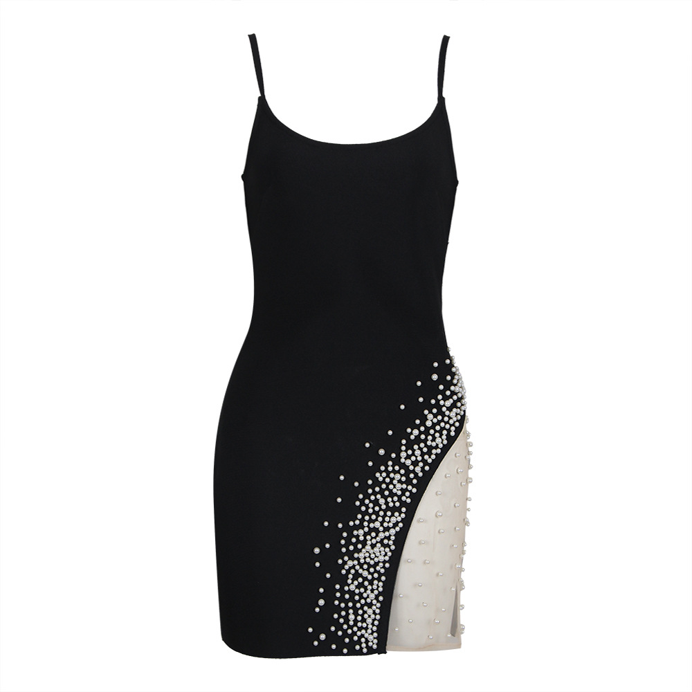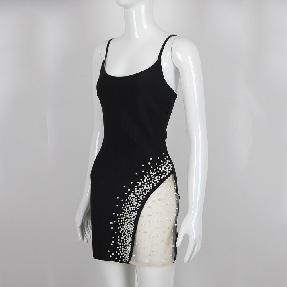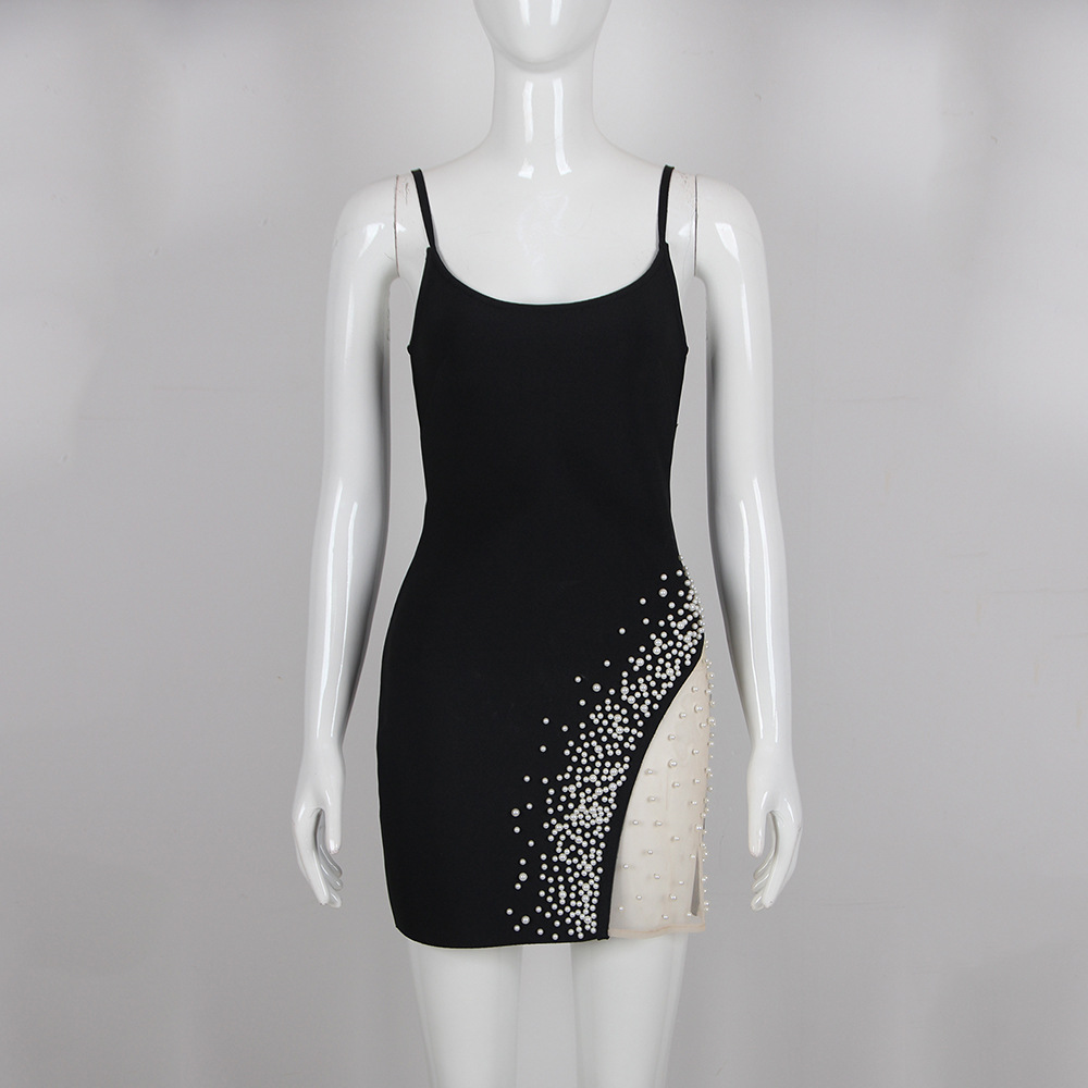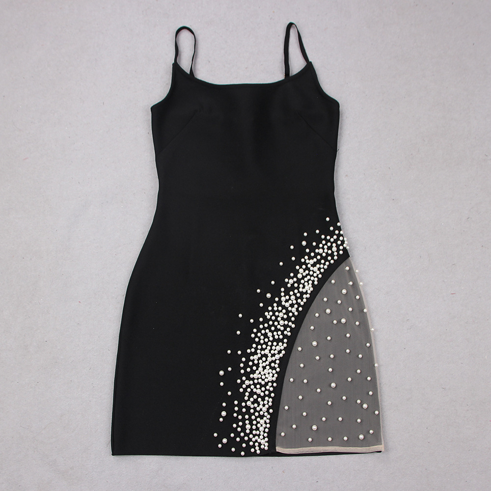 Summer Sexy Sling Beads Gauzy Package Hip Bandage One-piece Dress