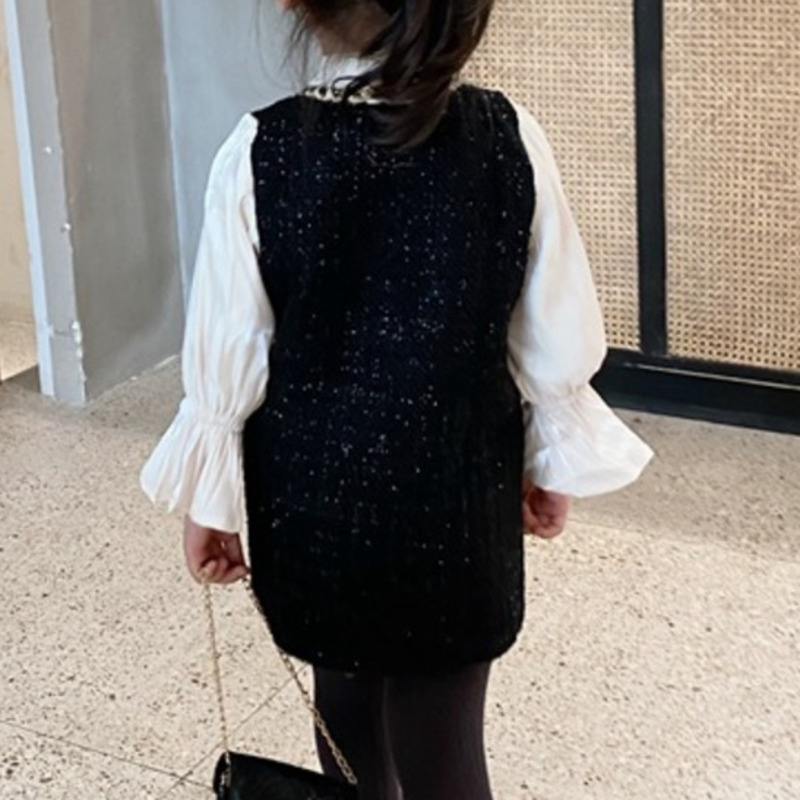 Color: black fake two small fragrant style dresses