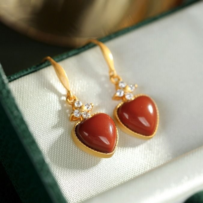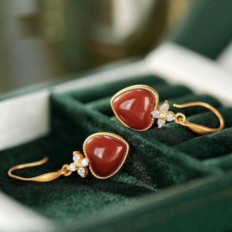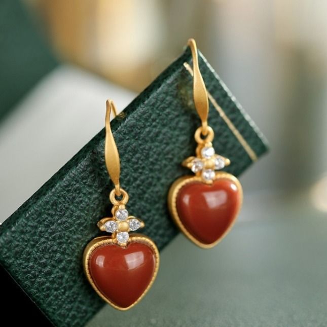 Inlay material: 925 silverColor: South Red Heart-shaped EarringsPurity: A pair of S925 sterling silverPopular elements: hollowEar-piercing material: 925 silver