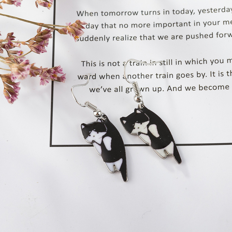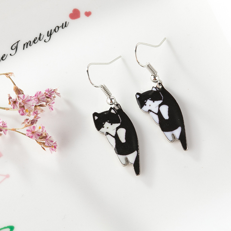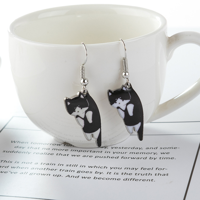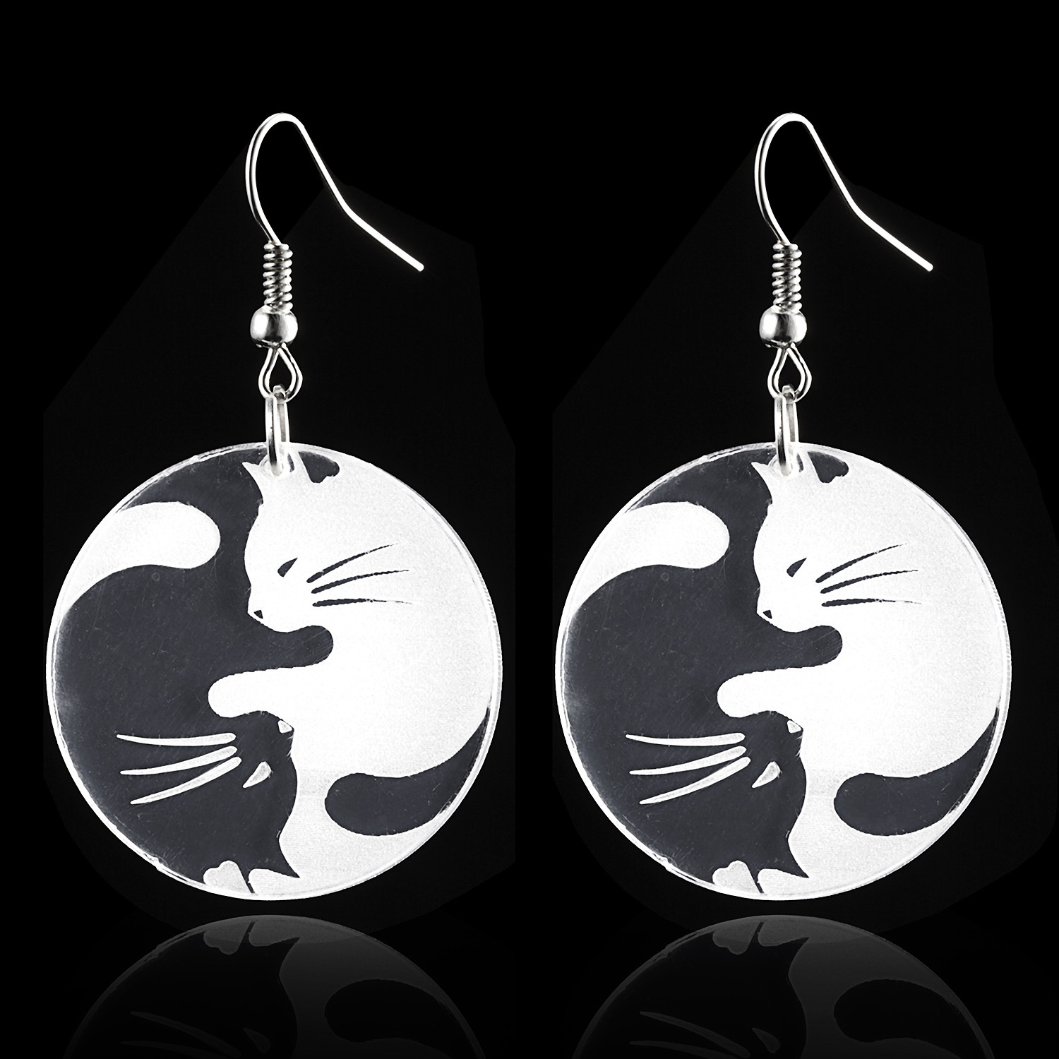 Black And White Yin And Yang Cat Ear Hook Earrings