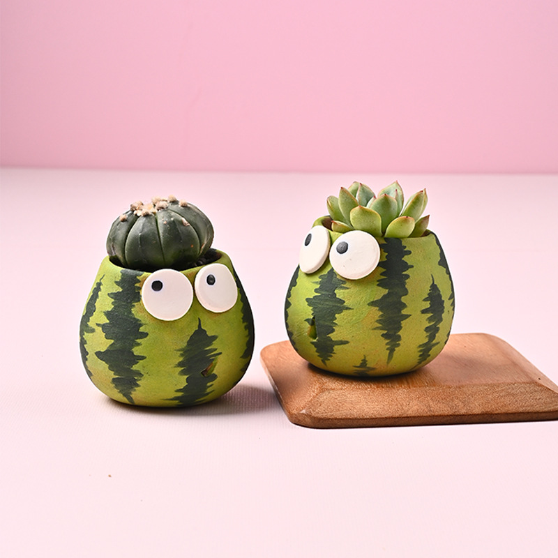 Material: CeramicStyle: cartoonColor: watermelon pot (with expression) without plantsSize: Ceramic - Mini