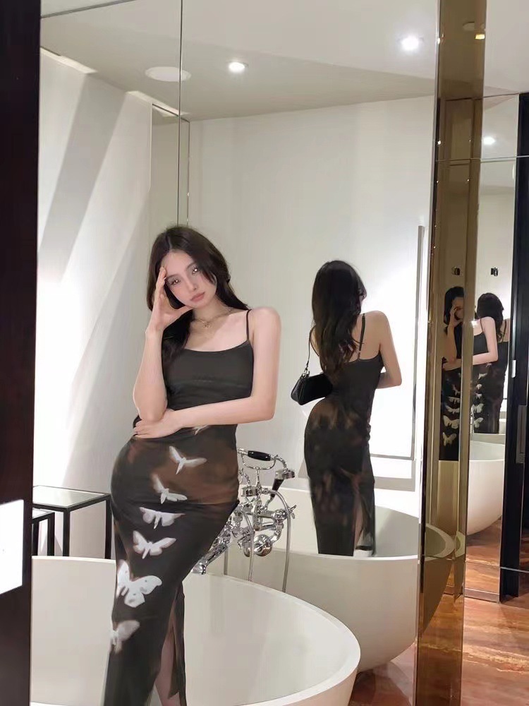 Product information: Color: long [974#], short [977#]#] Sleeve type: Princess sleeves Main fabric composition: PVC Size: S,M,L,XL,2XL Style type: artistic retro Skirt length: long skirt Skirt Category: Dress Style: One-Step skirt