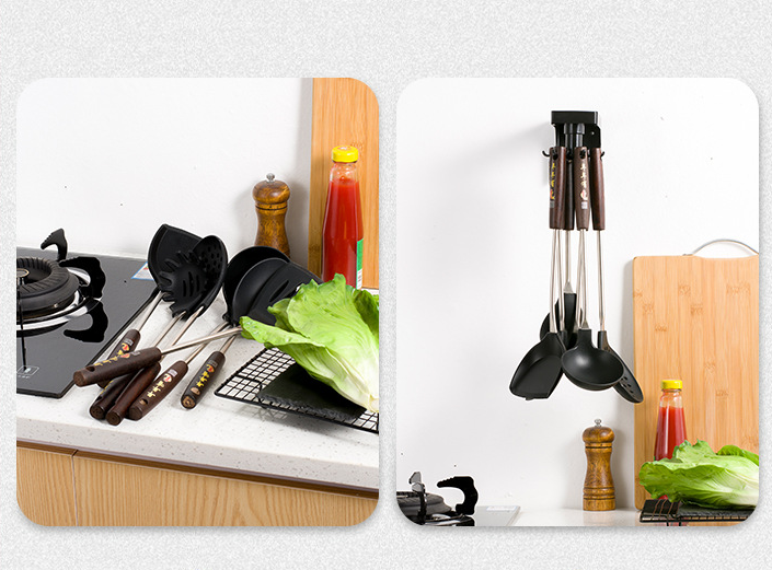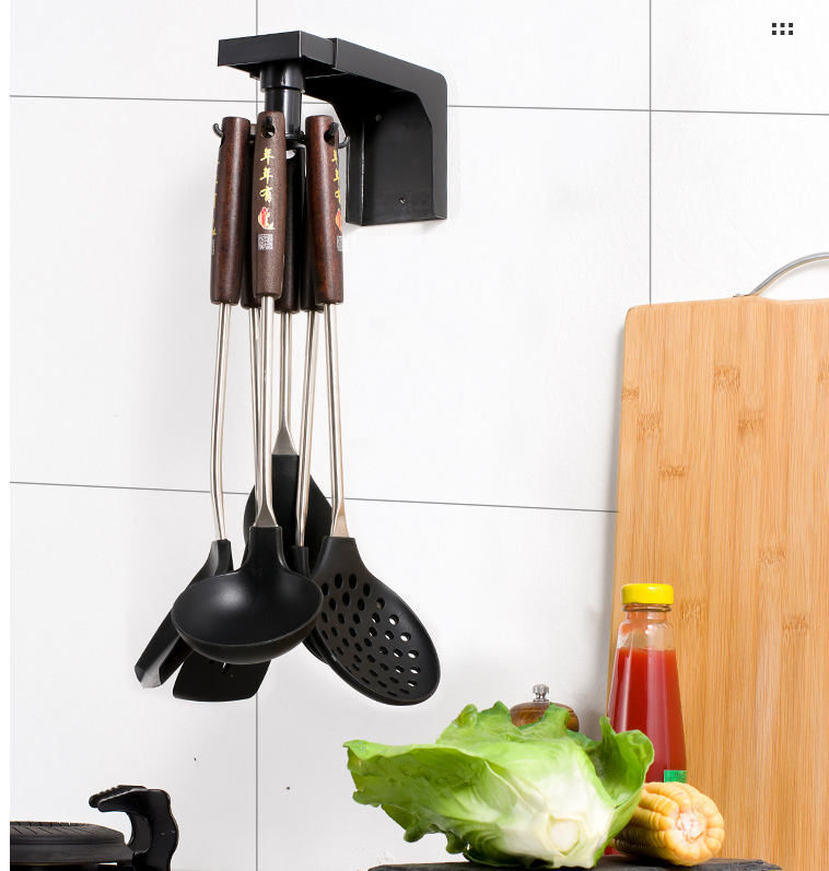 Product Name: Kitchenware Wall HookProduct Color: BlackProduct material: PP materialProduct features: Kitchen tableware storage without paste simple and stylishProduct size: see picture below