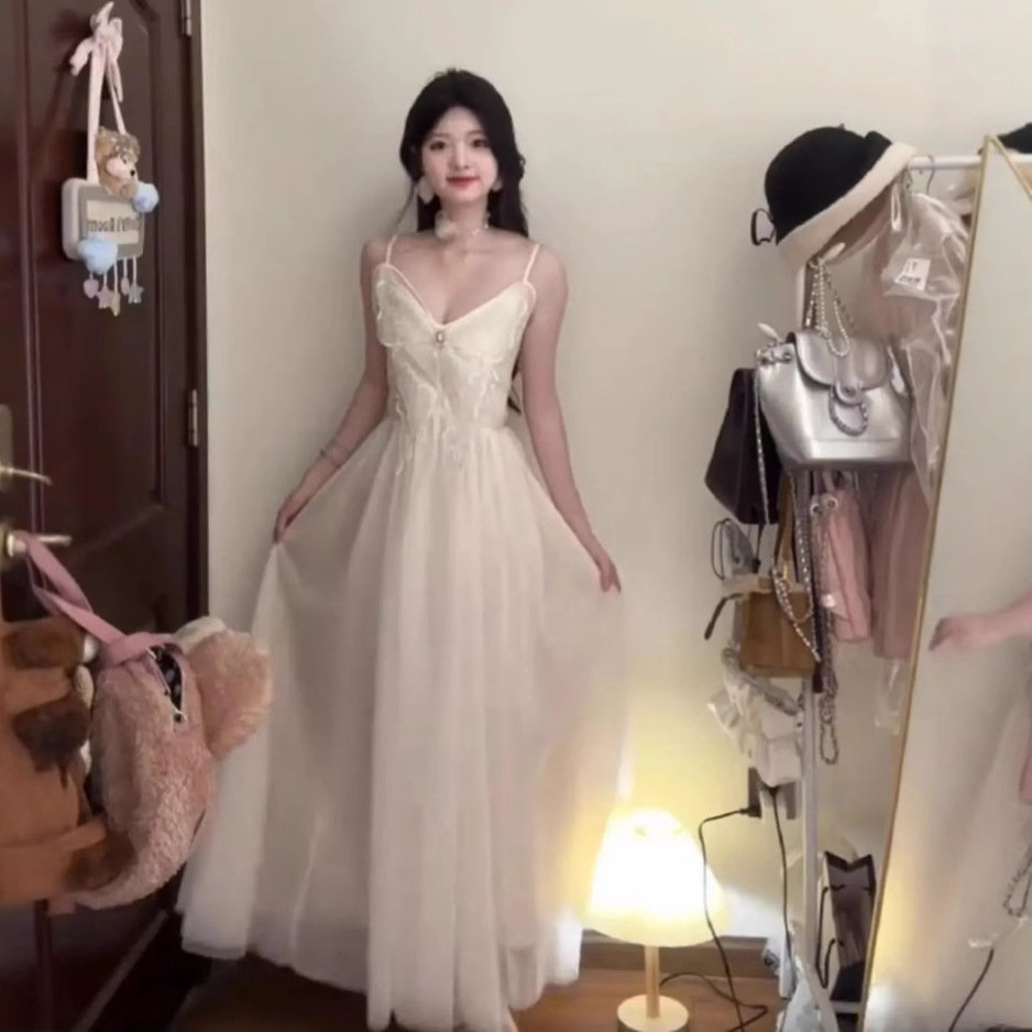 Product information:Color: White Waist Type: Mid waist Size: S,M,L,XL,2XL Main fabric composition: Polyester (polyester fiber) Sleeve length: sleeveless Skirt Category: Dress