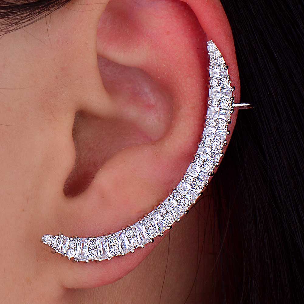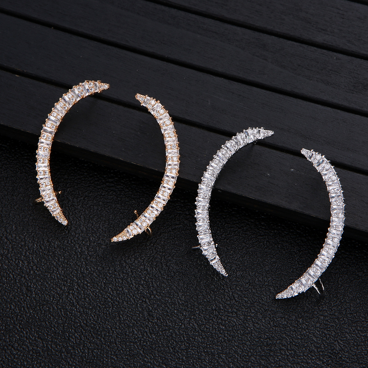 S925 Silver Needle Bread Diamond Crescent Earrings Zircon European and American Atmospheric Ear Bone Clips Show Face Thin Earring Wings