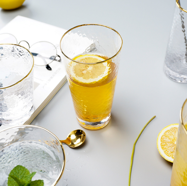 Hammer pattern glass cup water cup home creative drawing gold side cup