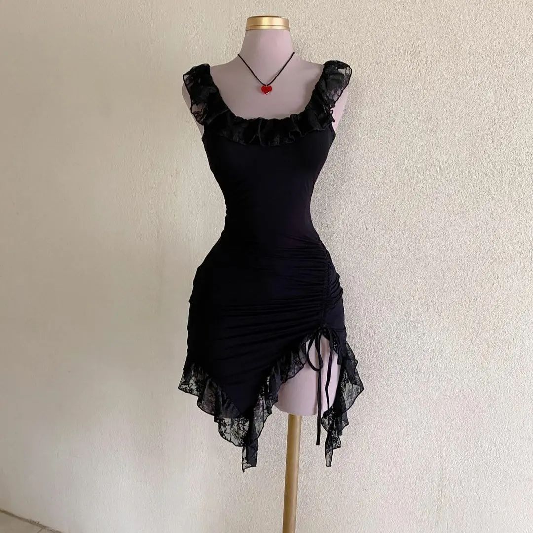 Product information: Skirt-type: asymmetric skirt Color: Black Size: S,M,L,XL,XXL,XXXL Style type: Street hipster Popular elements: ruffles Style: pullover Fabric name: Polyester Style: Elegant style Craft: collage/stitching
