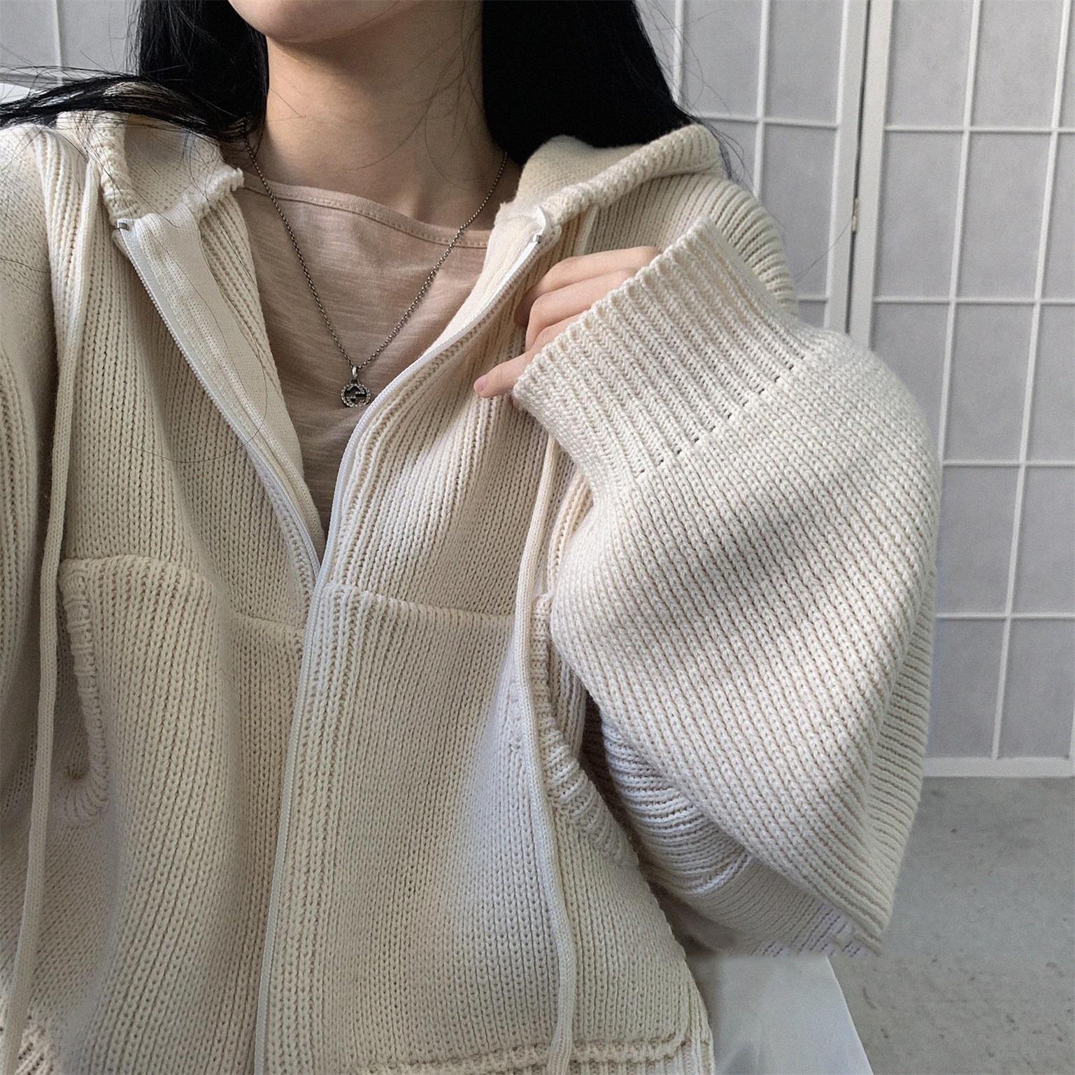 Product information: Sleeve length: Long sleeves Collar: Hooded Length: Regular Front flap: zipper Pattern: Solid color Size: Average size Color categories: Black, grey, beige