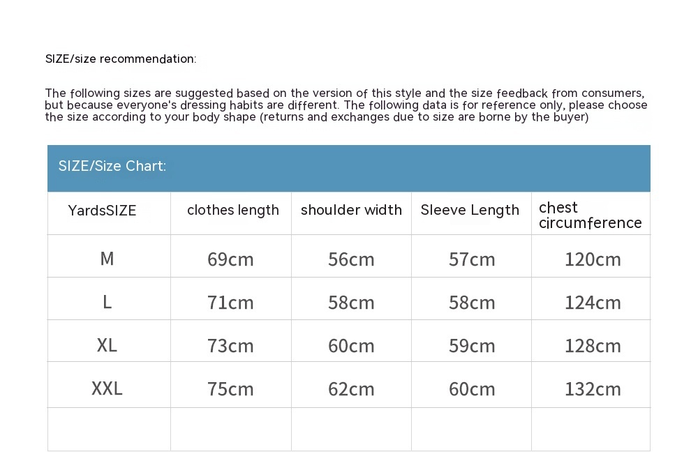 1. Asian sizes are 1 to 2 sizes smaller than European and American people. Choose the larger size if your size between two sizes. Please allow 2-3cm differences due to manual measurement. 2. Please check the size chart carefully before you buy the item, if you don't know how to choose size, please contact our customer service. 3.As you know, the different computers display colors differently, the color of the actual item may vary slightly from the following images.