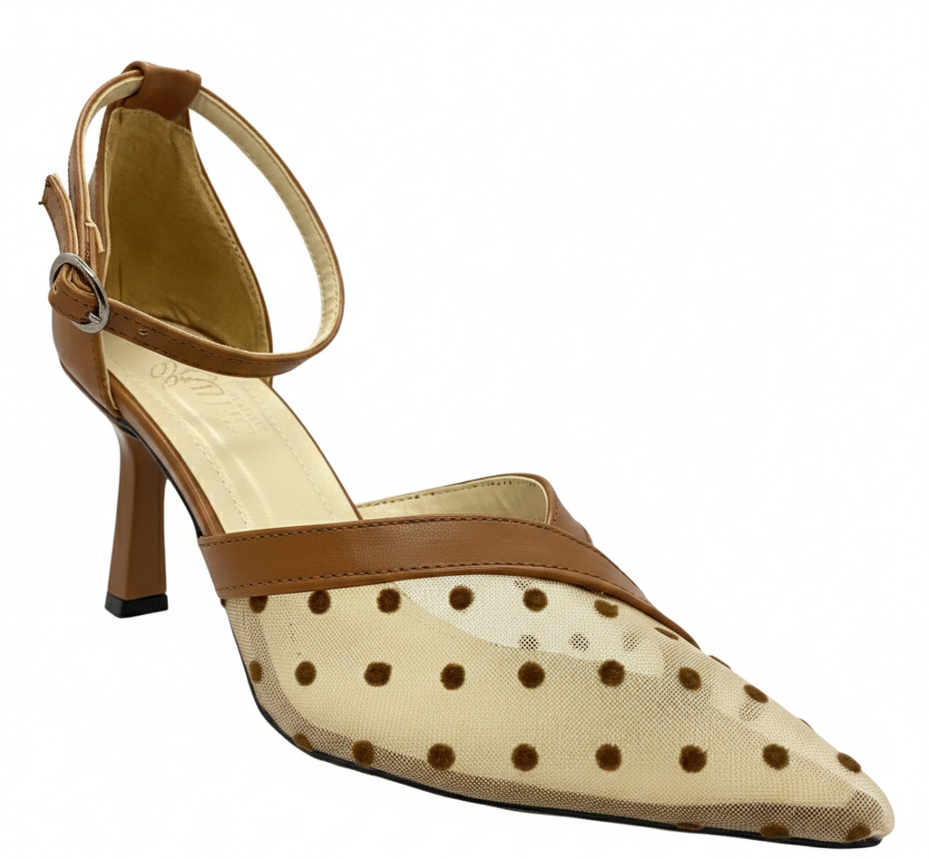 Charming Mesh Polka Dot Pumps with Ankle Strap