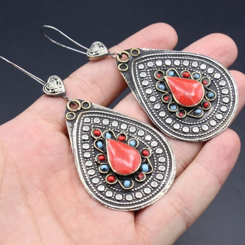 Popular Water Drop Pendant Inlaid Ruby Metal Alloy Earrings