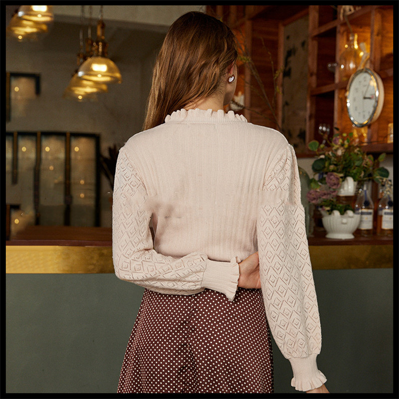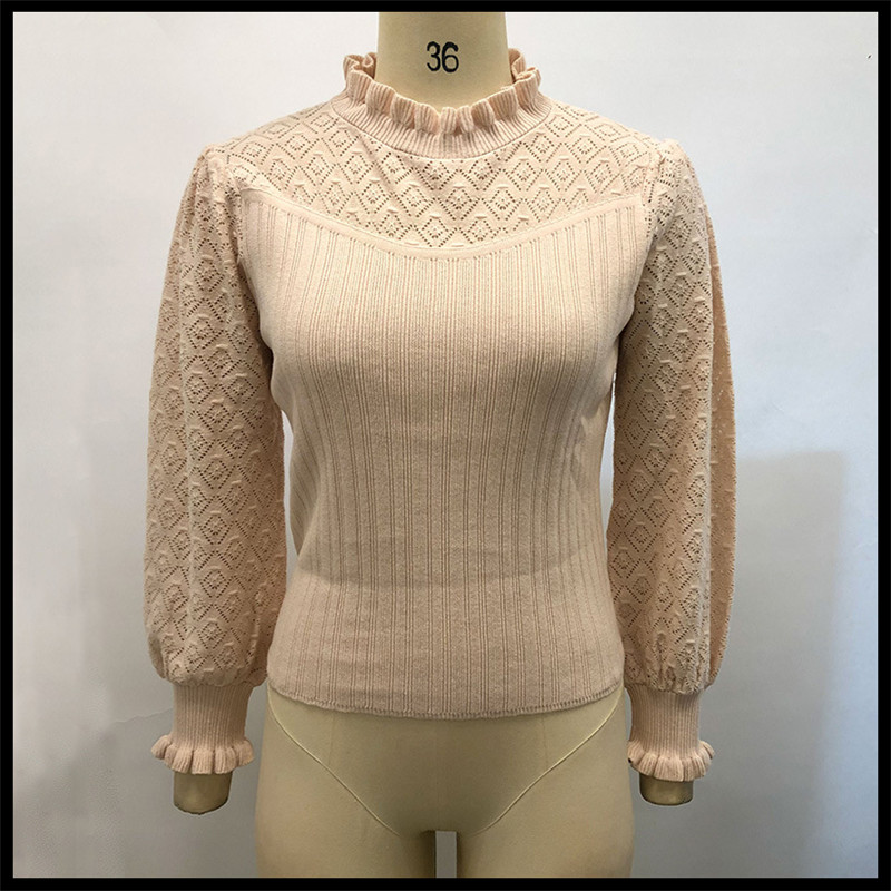 Pure color geometric wood ear knit sweater