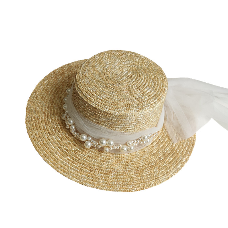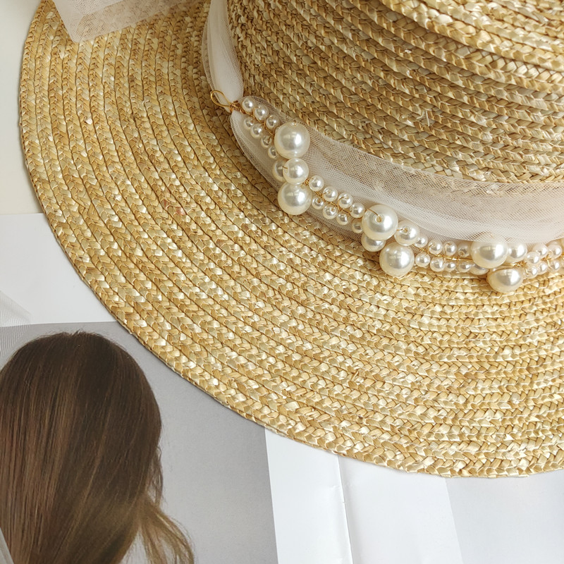 Note: The pearl mesh can be removed. The length of the pearl mesh fixed on the hat is not as long as that of the pearl mesh. The material of the wheat straw is rough in workmanship, and broken grass joints cannot be avoided.