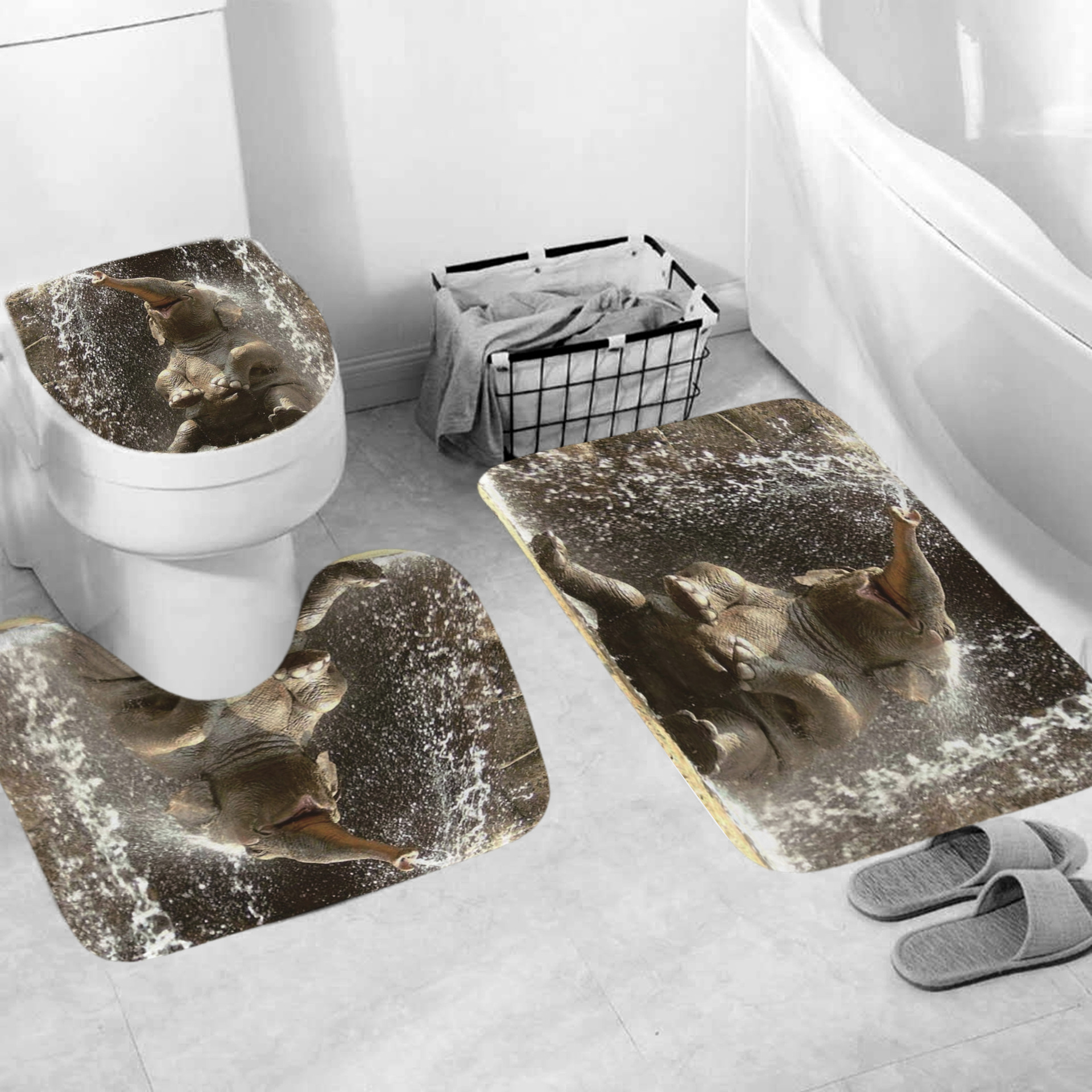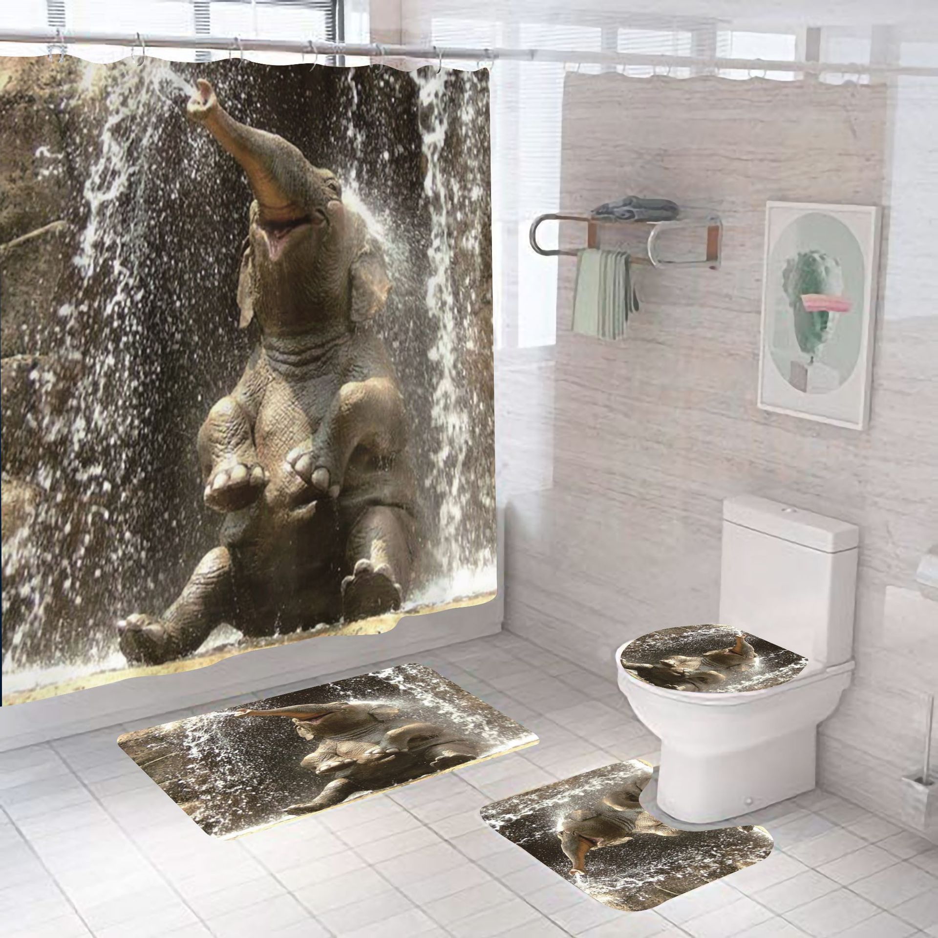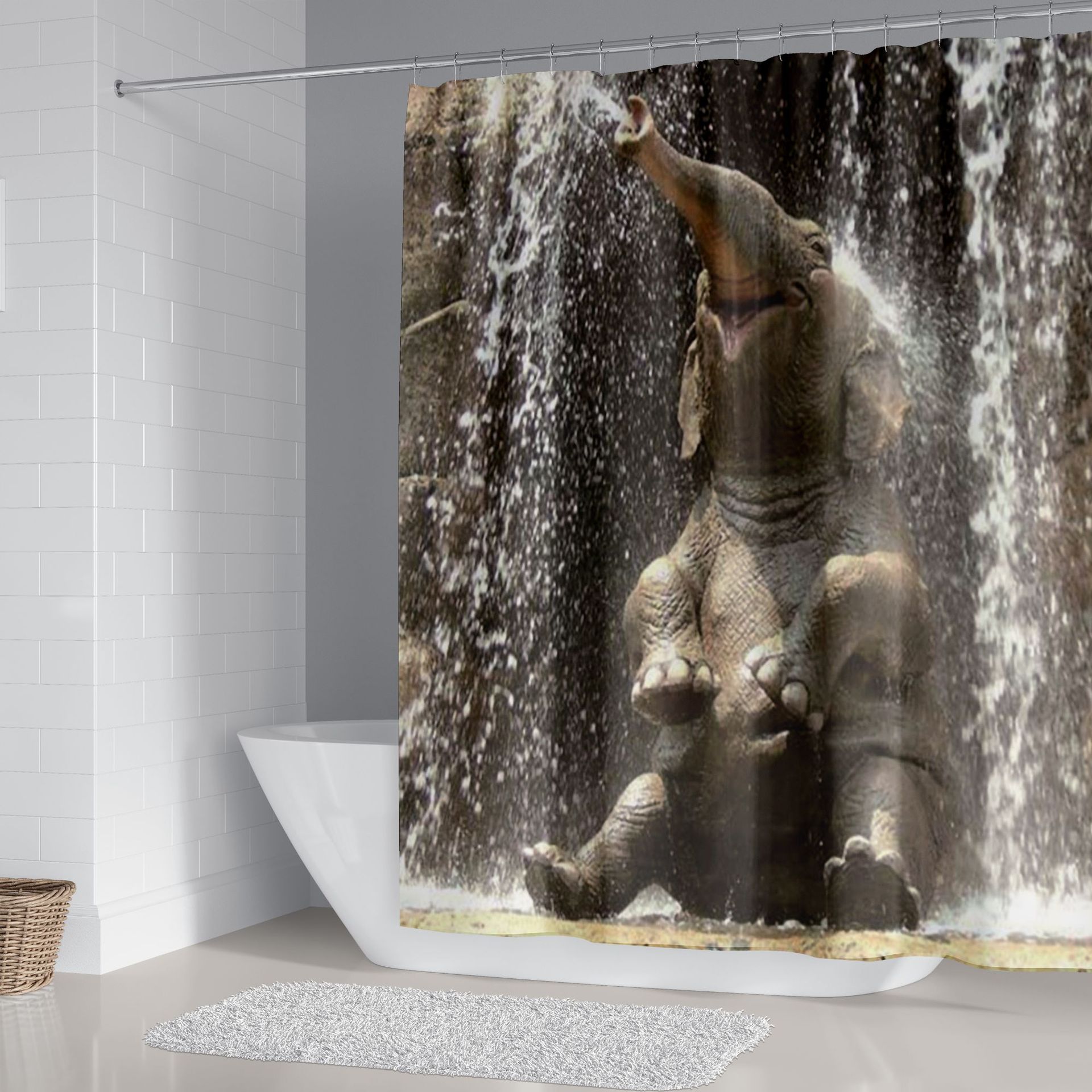 Material: Pongee (polyester)Style: AmericanPattern: Bathing ElephantSize:59 * 70.8in = 150 W * 180 h cm65 * 70.8in = 165 w * 180 h cm70.8 * 78.7in = 180 w * 200 h cmThree piece set (45 * 75)