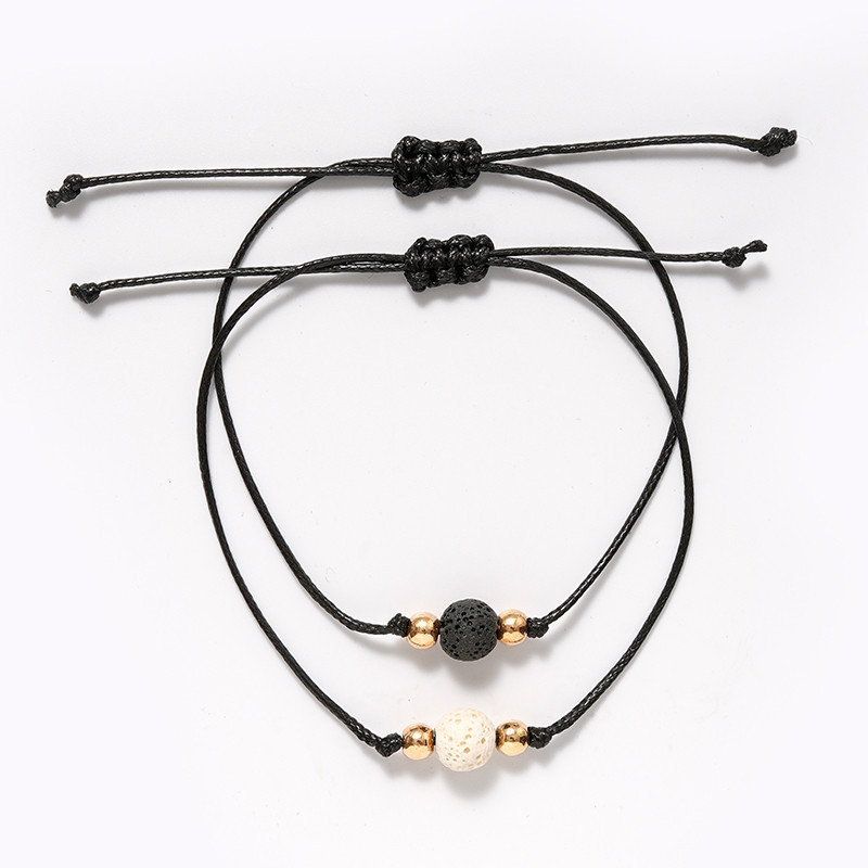 Product information:Style: European and American, simple, retroMaterial: volcanic stoneProcessing technology: hand weavingType: BraceletStyle: UnisexShape: round ballColor: 2 piece setPopular elements: geometryPackage:Stone bracelet X1