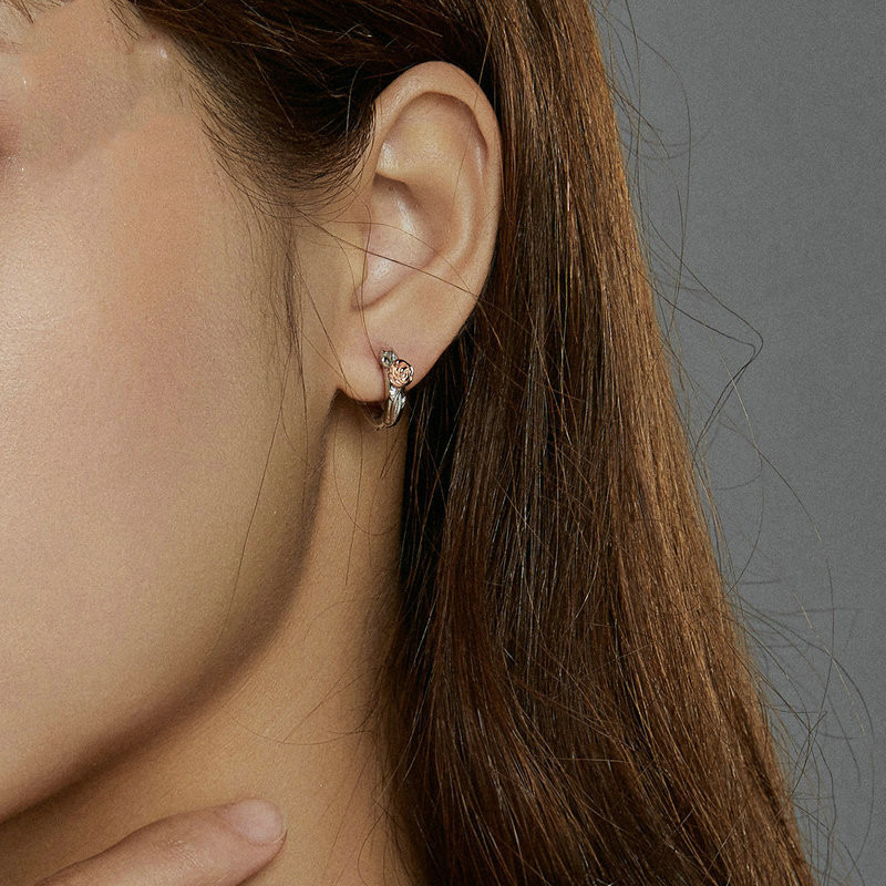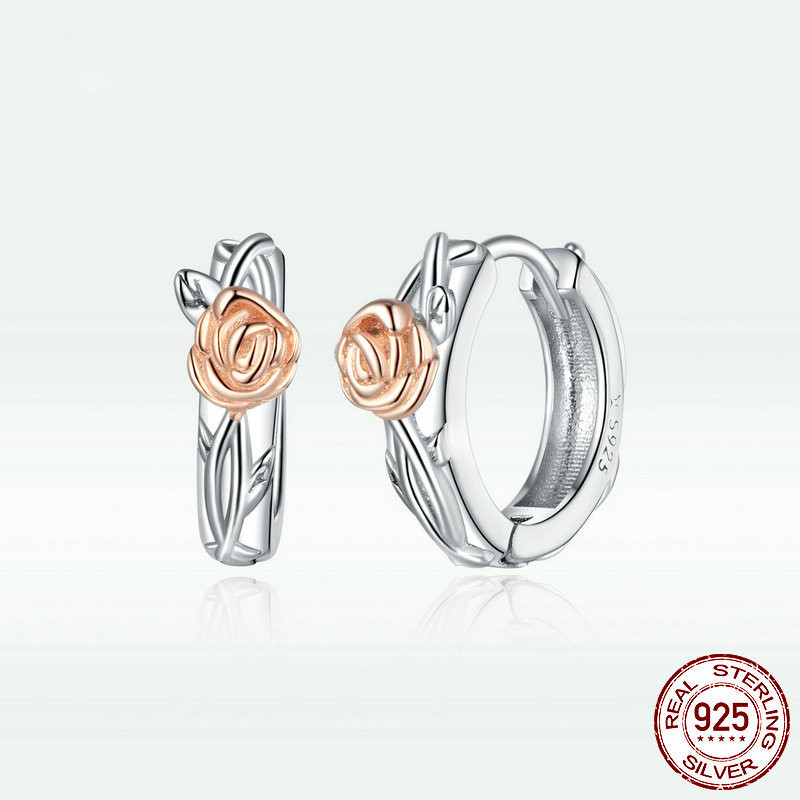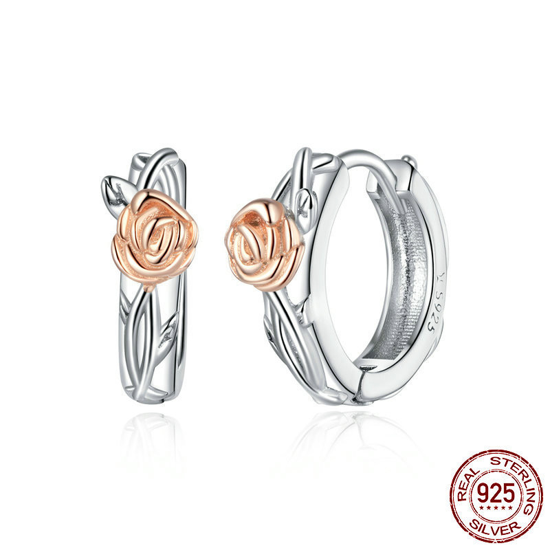 Sterling Silver Rose Vine Earrings Female Elegant Plant Earrings
