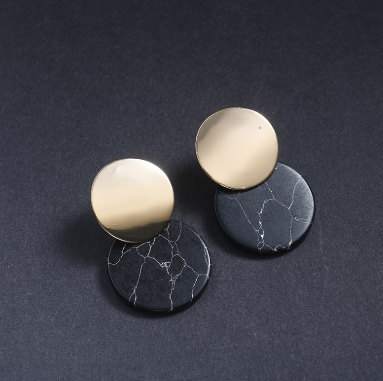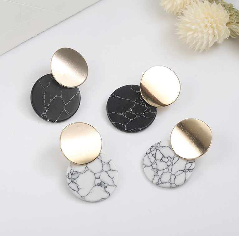 Europe and the United States simple cool wind earrings black and white retro marble personality earrings fashion elegant earrings female