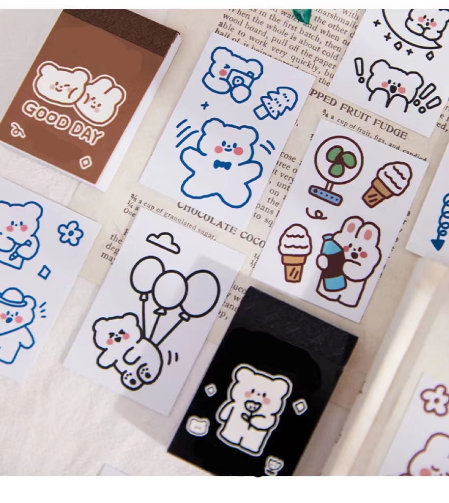 Model: UniversalColor Category: Pepsi Cute Happy Bear Cub Rabbit DiaryMaterial: Japanese composite paper + release paperQuantity: 50 sheetsProduct size: 40x60mm