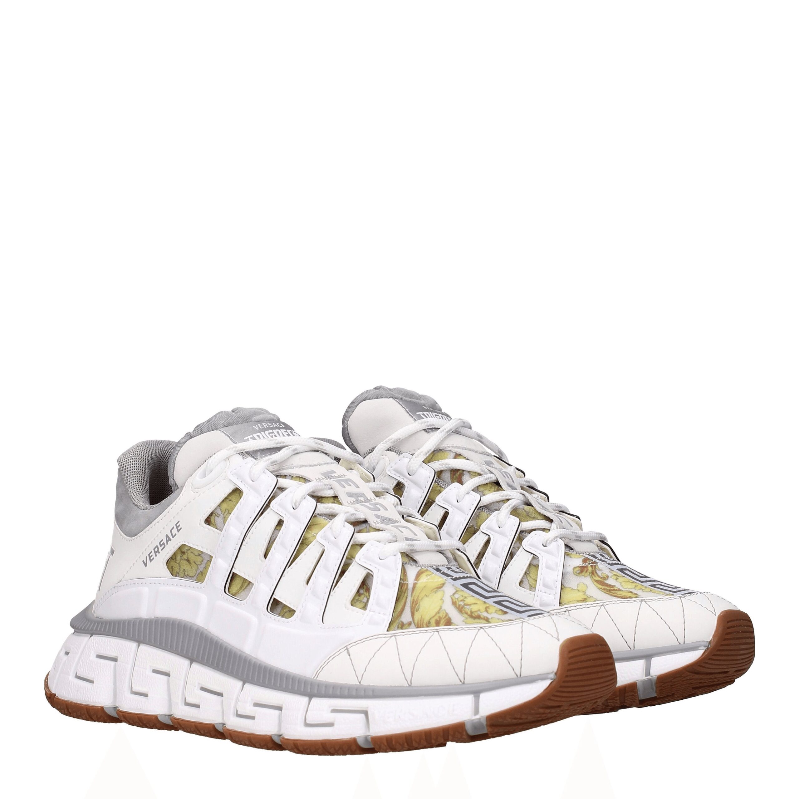 The product with MPN DSU8094D16TCGD014H and code F69427 leather in white is a sneakers designed by Versace. It has features like front logo, side logo, back logo.