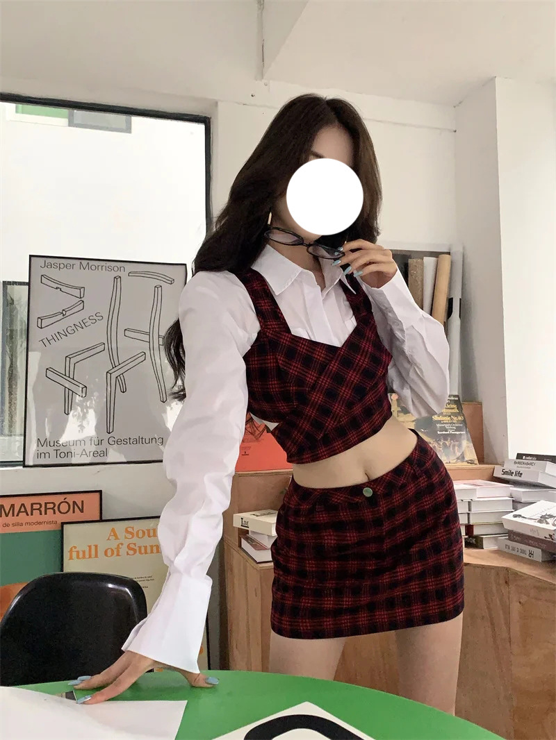 Color: plaid skirt, plaid vest, plaid skirt+plaid vest, white shirt