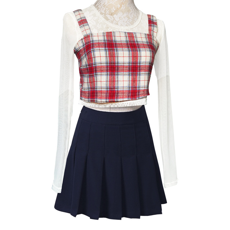 C,; 845-3 white shirt + red and white plaid skirt,