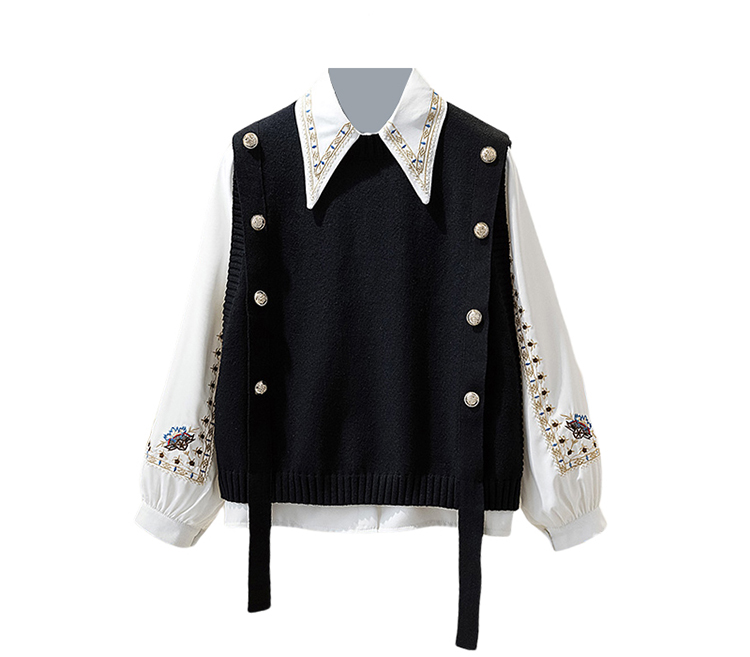 Color classification: black vest+shirt, brown+shirt, chiffon shirt