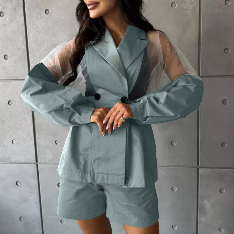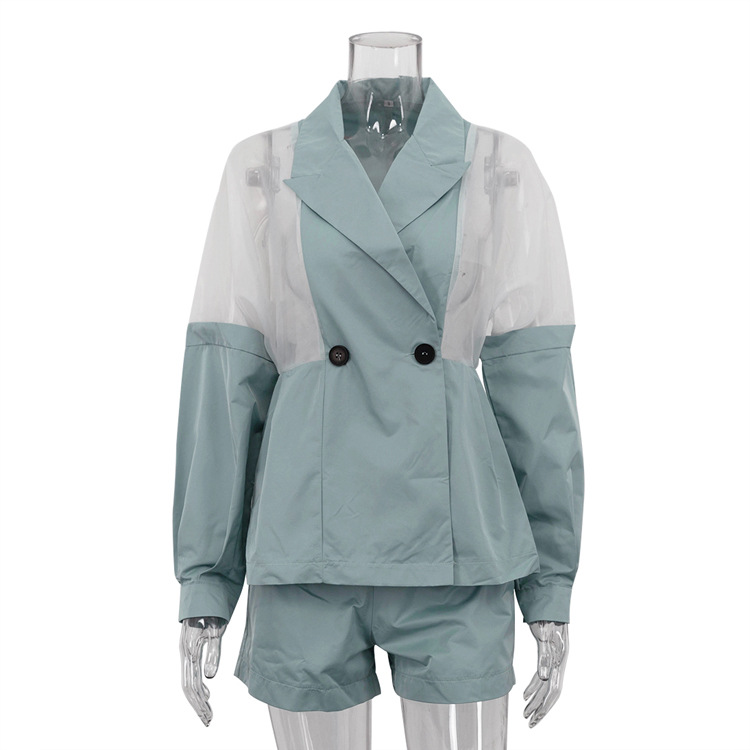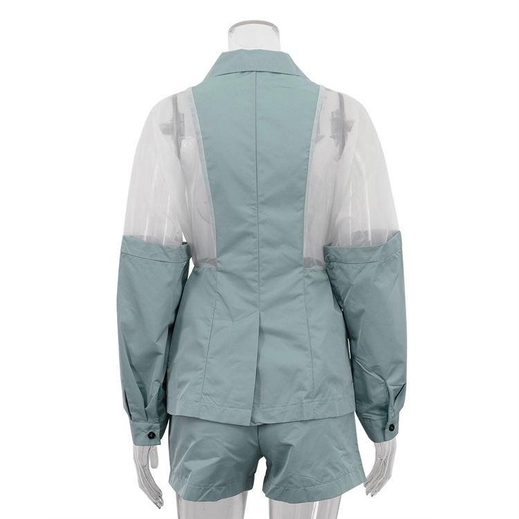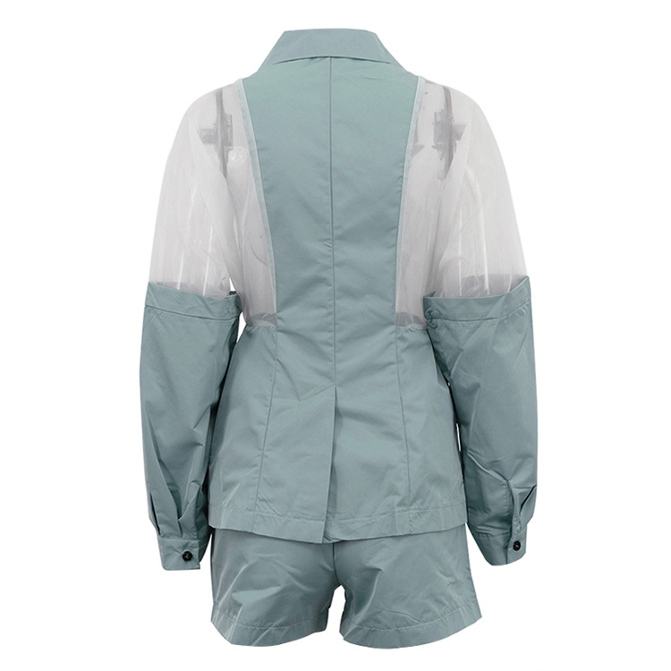 Product information: Pattern: None Color: green Pants length: Shorts Size: S,M,L Style type: street fashion Popular elements: see-through Fabric name: Polyester Sleeve length: long sleeve Craft: collage/stitching