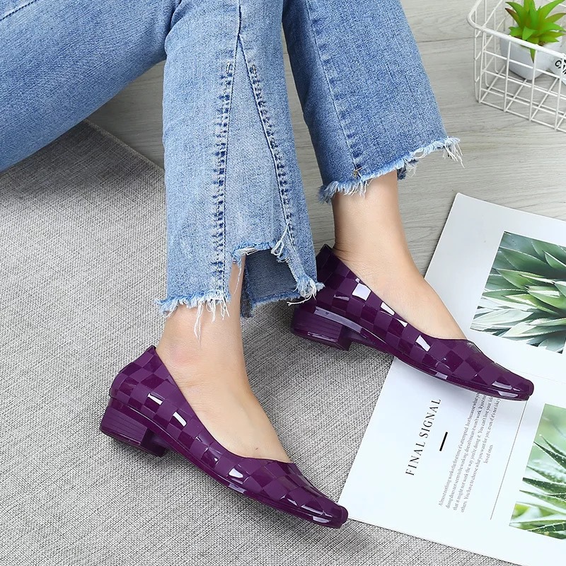 Style: CasualPopular elements: gridToe shape: pointedUpper material: PVCApplicable gender: femaleHeel height: low heel (1-3CM)Pattern: Check
