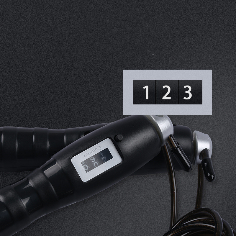 Equipment: ABS handle, ABS handle, TPU coated steel cableProduct name: digital skipping ropeFeatures: digital counting, adjustable length, adjustable loadFunction: fitness exerciseType: adjustable digital skipping rope