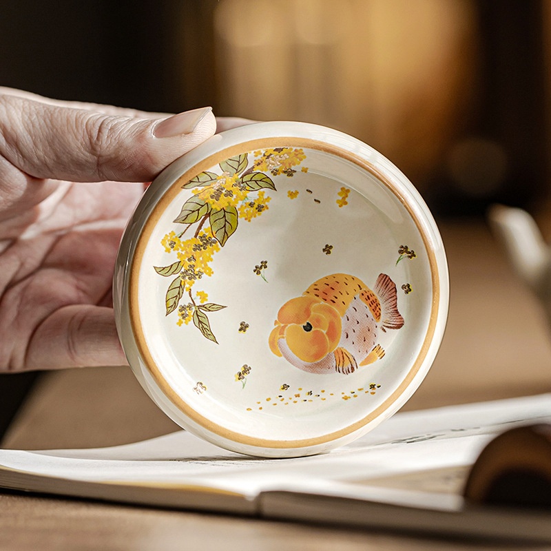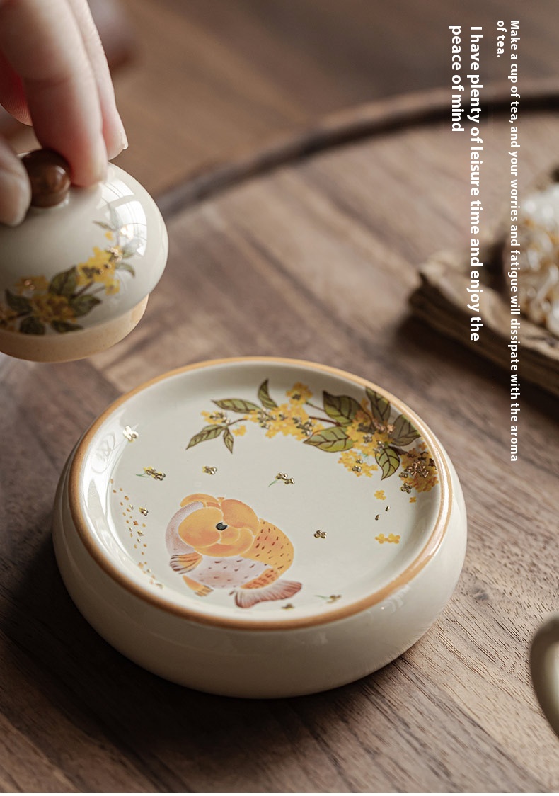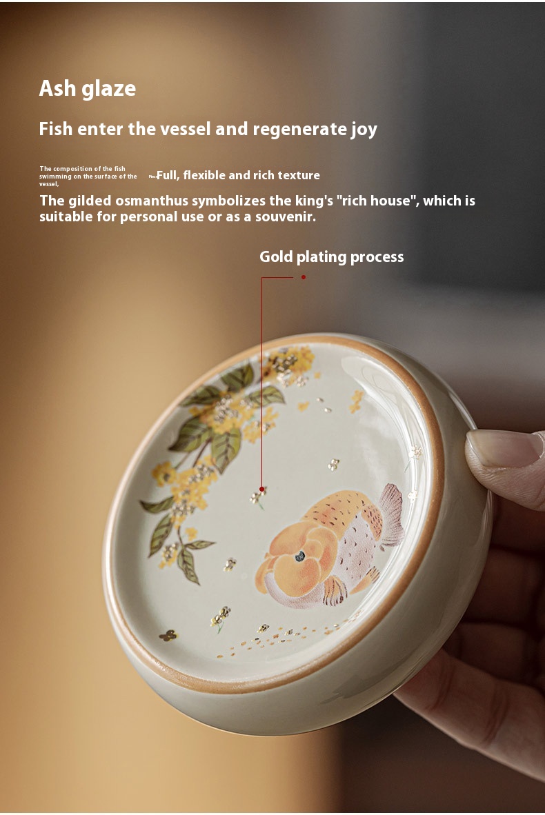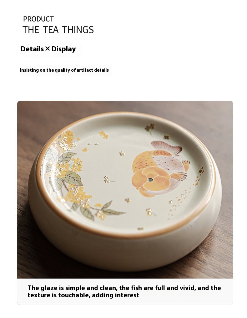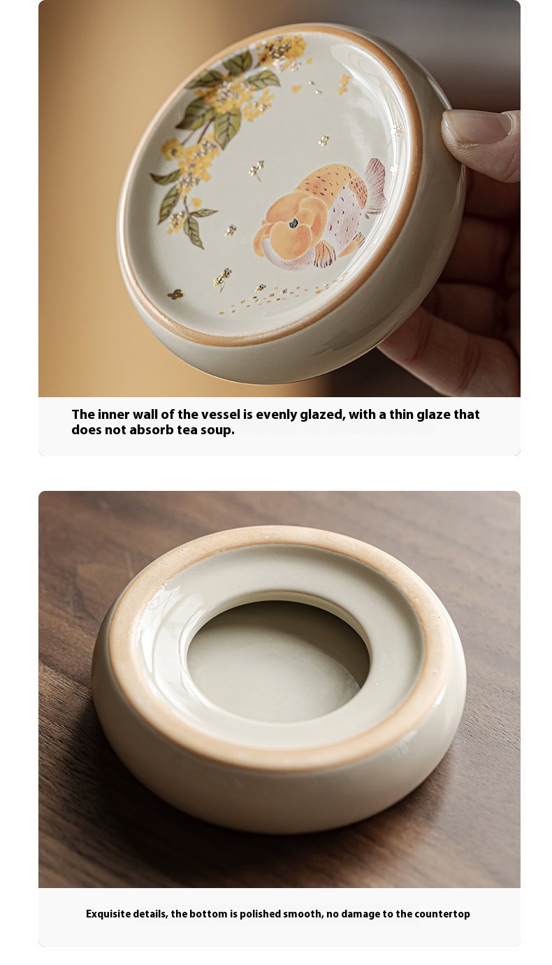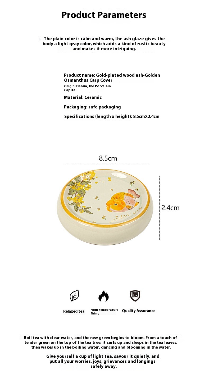 Product information:Name: golden grass and wood Gray-Golden Guifu carp cover Color: grass Gray small round teapot top support (Golden Guifu carp) Material: Ceramic Style: New Chinese style Packaging: Safe Packaging Specification: 8.5x2.4cm