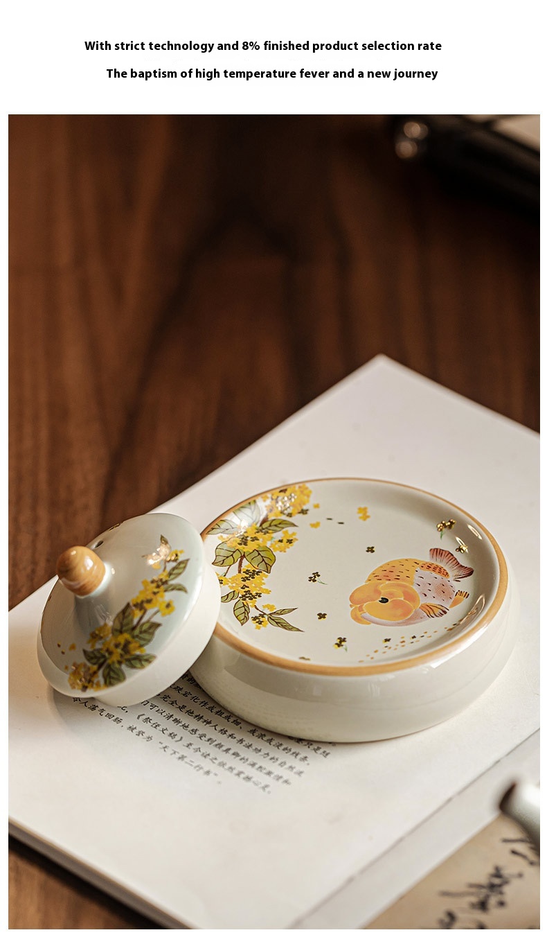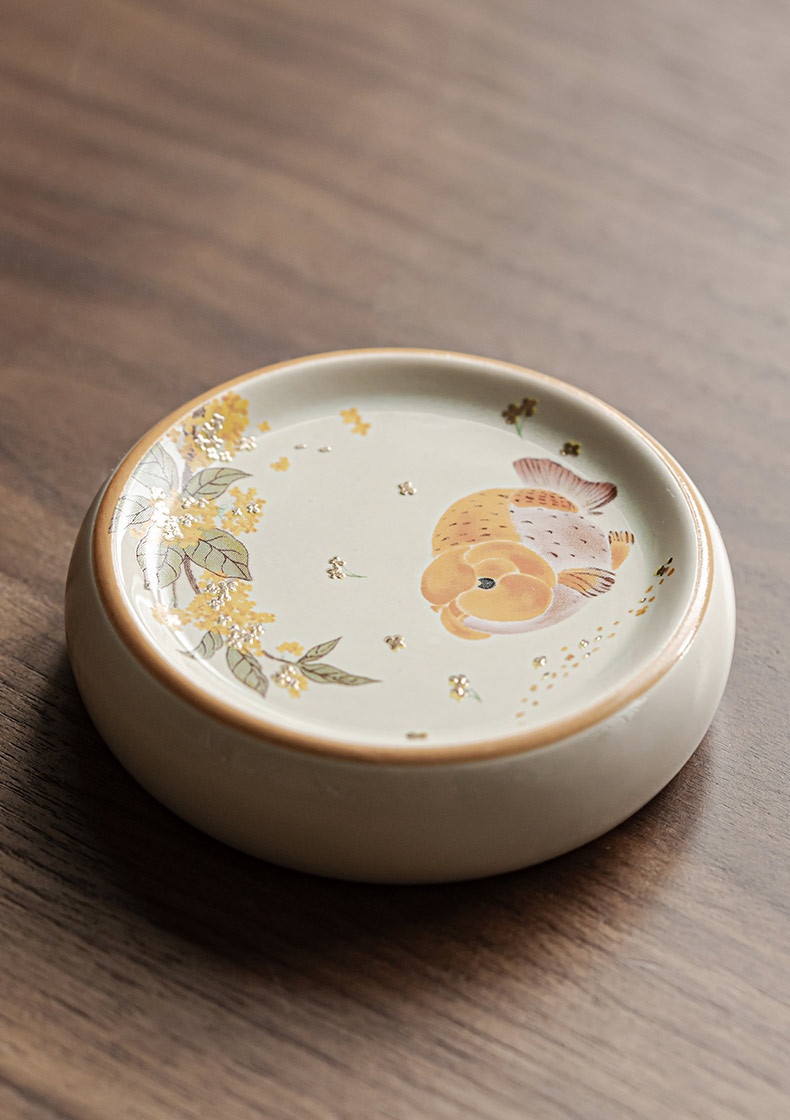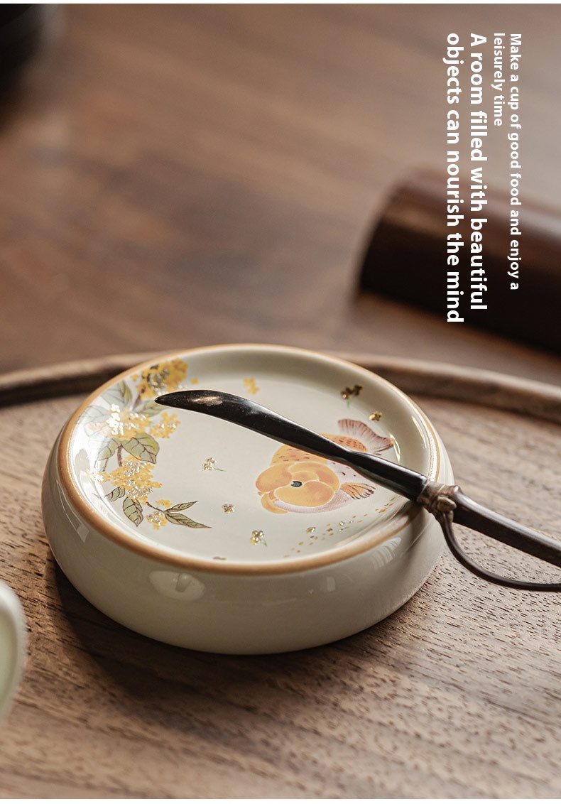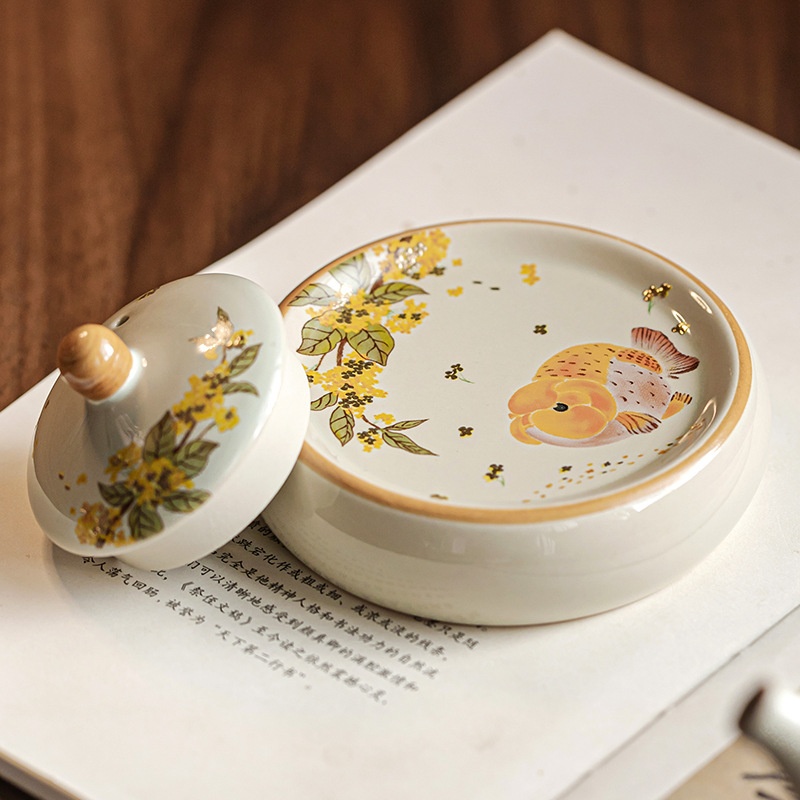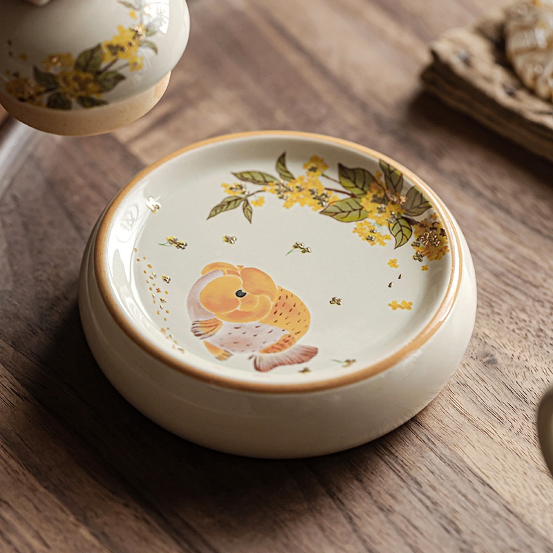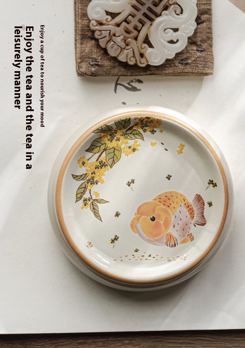 Product information:Name: golden grass and wood Gray-Golden Guifu carp cover Color: grass Gray small round teapot top support (Golden Guifu carp) Material: Ceramic Style: New Chinese style Packaging: Safe Packaging Specification: 8.5x2.4cm