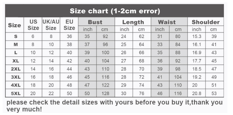 1. Asian sizes are 1 to 2 sizes smaller than European and American people. Choose the larger size if your size between two sizes. Please allow 2-3cm differences due to manual measurement. 2. Please check the size chart carefully before you buy the item, if you don't know how to choose size, please contact our customer service. 3.As you know, the different computers display colors differently, the color of the actual item may vary slightly from the following images.