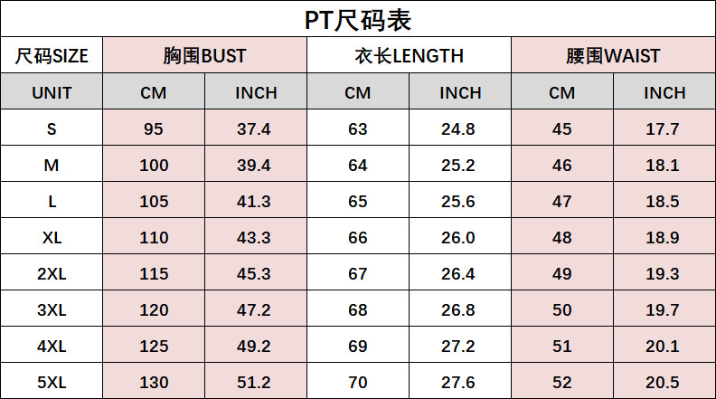Size: S,m,l,xl,2xl,3xl,4xl,5xl