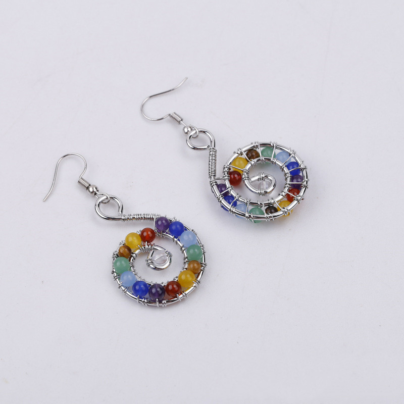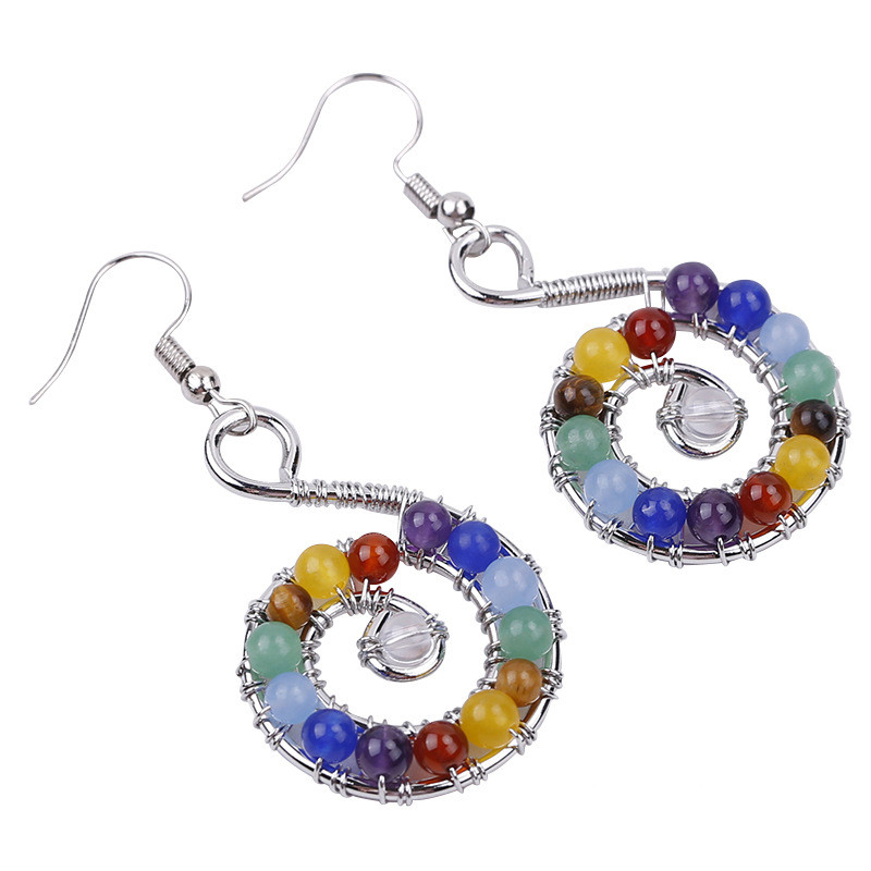 Product information:Name: Natural mixed bead Spiral Universe colorful stone earringsMaterial: natural seven chakra beadsType: earringsStyle: European and American Korean fashionSize: 36x28mmPacking list:Earrings*1 pair
