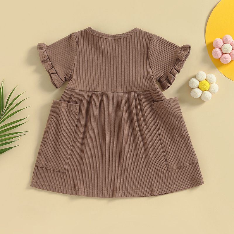 Product information: Color: pink, dark brown, Lake Blue Applicable height: 90cm,100cm,110cm,120cm Style: short sleeve Fabric name: Cotton Skirt Category: Dress