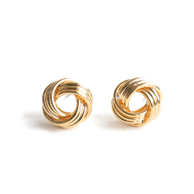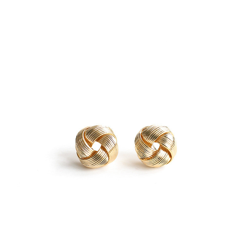 Simple and Compact Design Round Ball Ins Cold Wind Gold-Plated Silver Needle Earrings