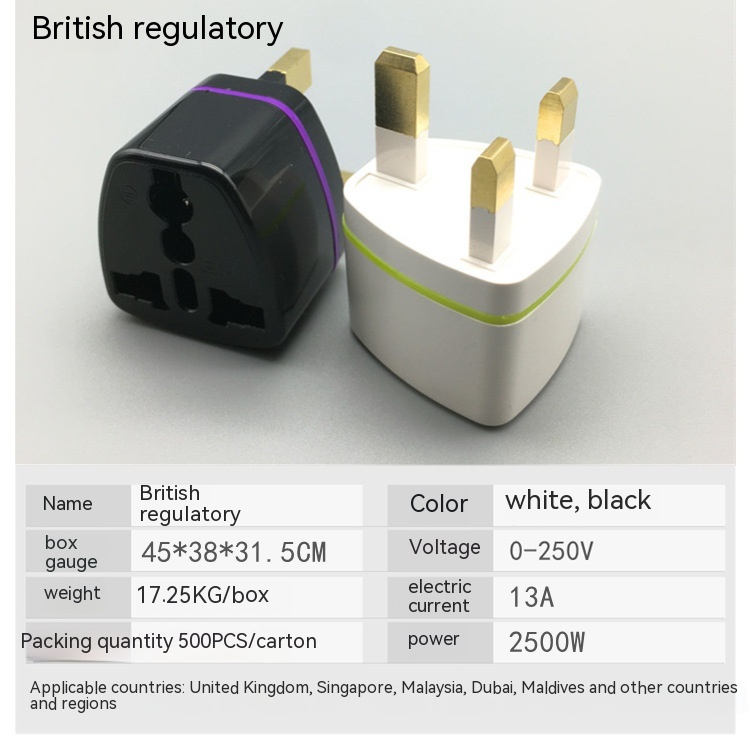 Product information:Overall size: 3.5*3.7 * 5cm Application Scope: Tourism Rated voltage V:AC250V Rated current A:13A Rated Power W:2000W shell material: ABS Flame retardant grade: primary flame retardant Weight g:31g