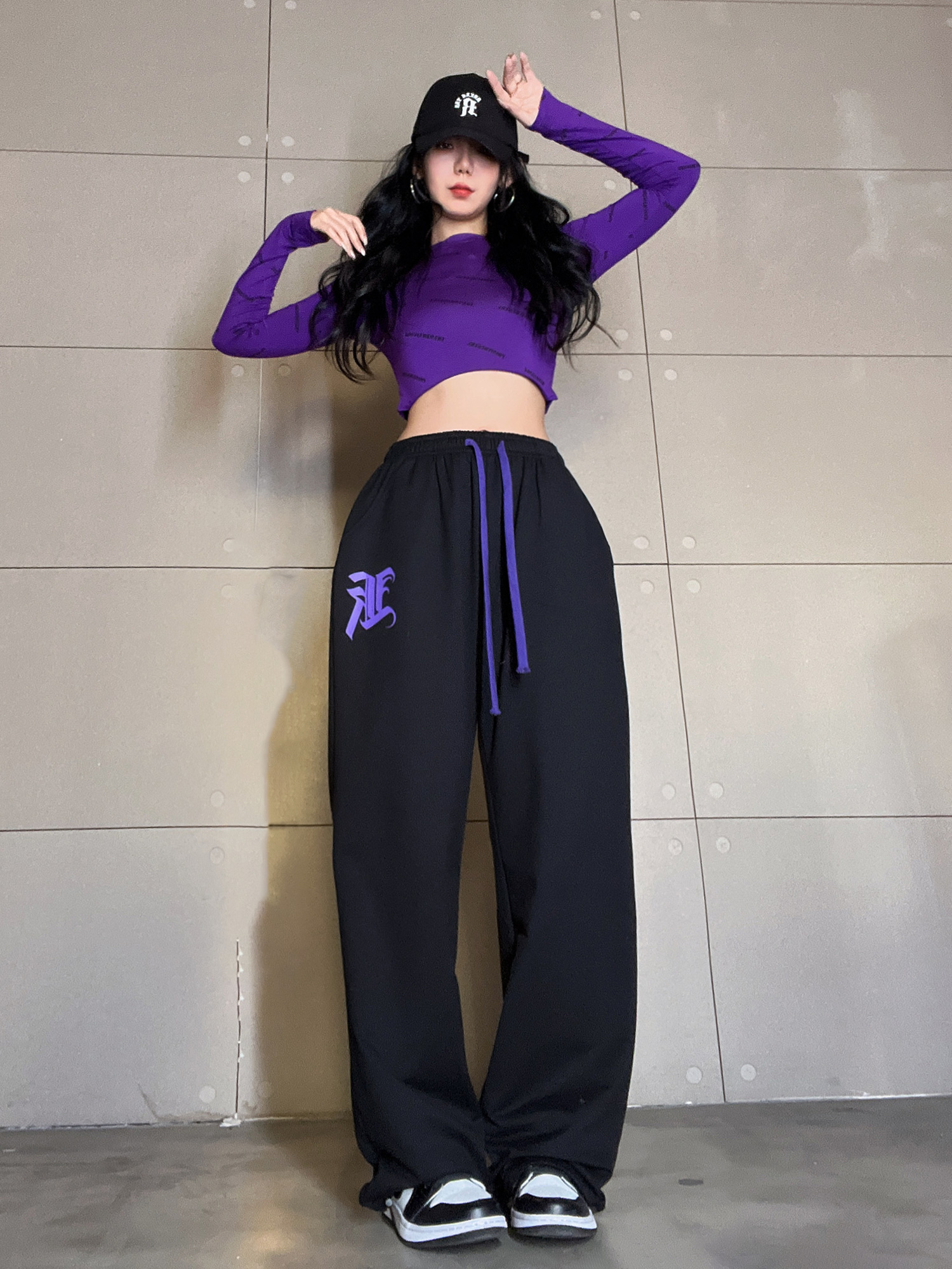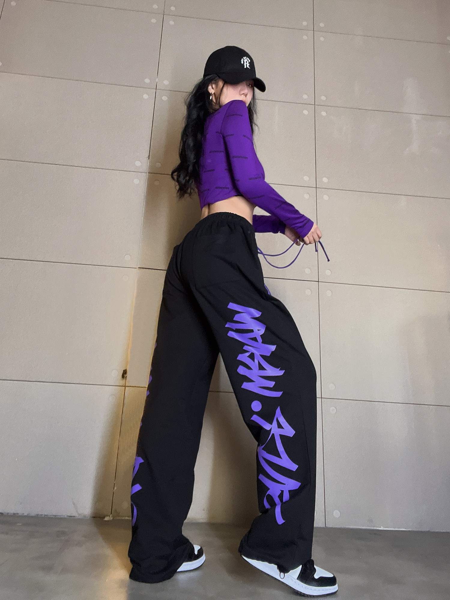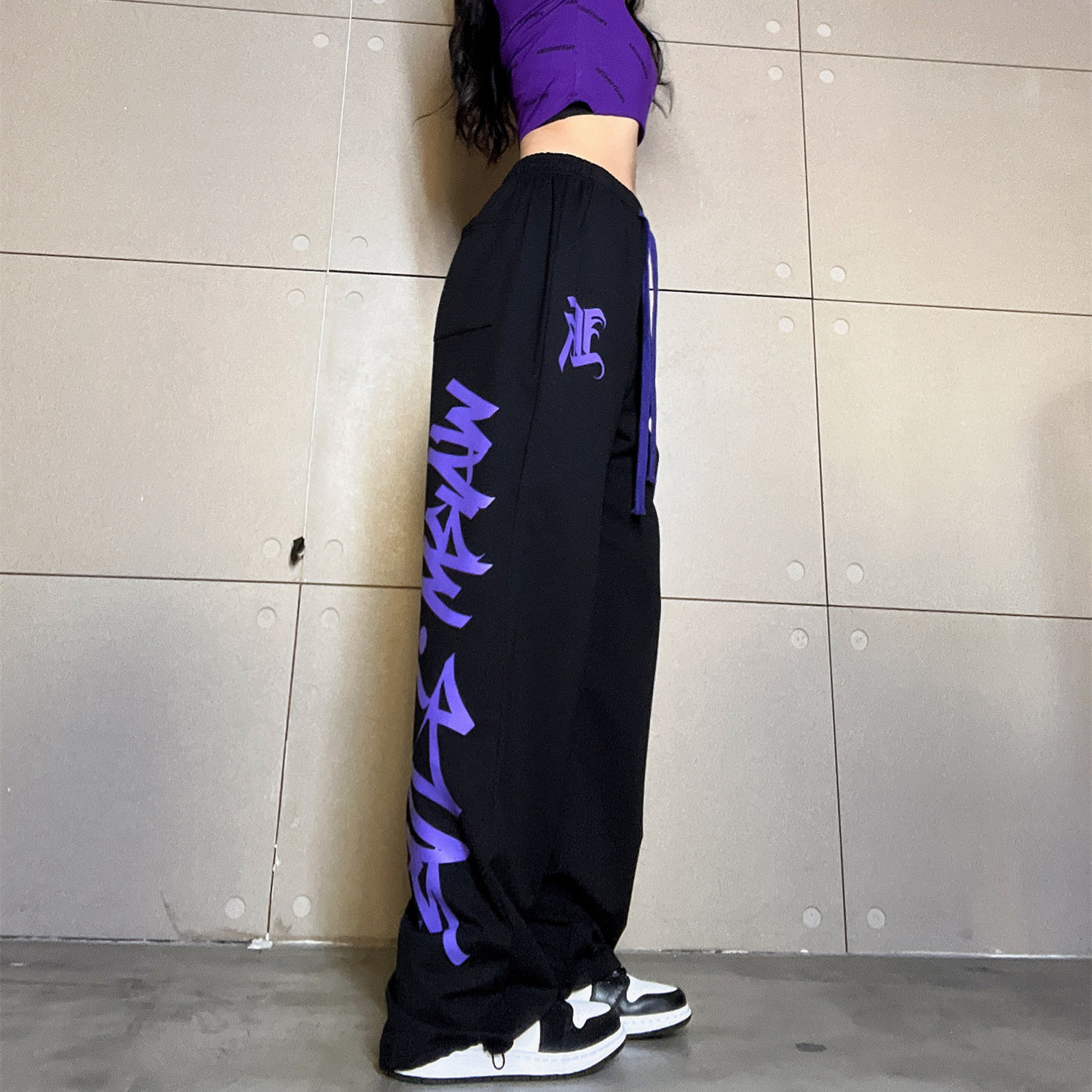 Color classification: Purple drawstring trousers