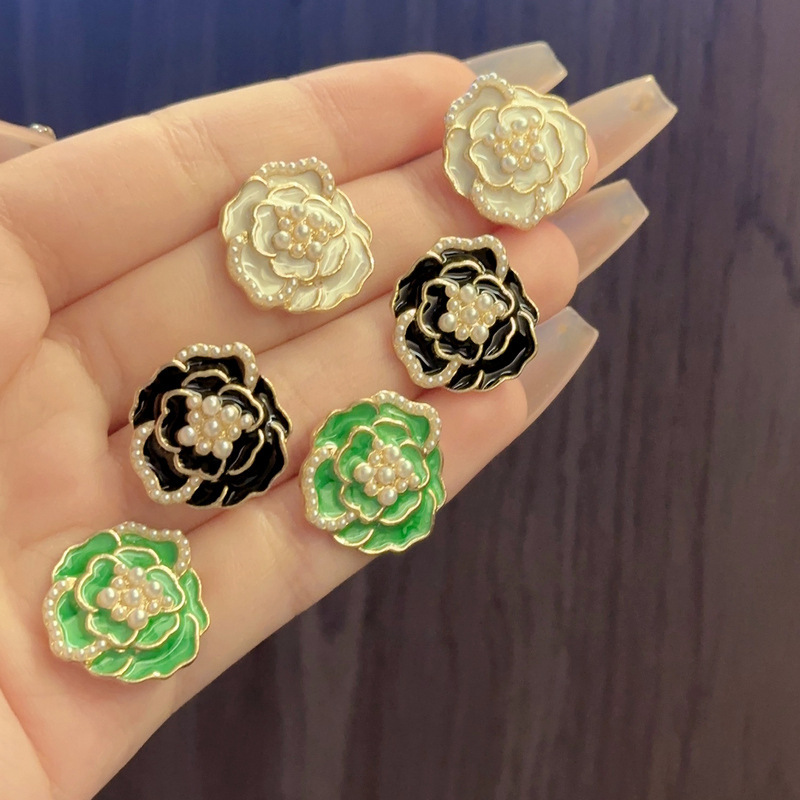 Product information:Treatment Process: Electroplating Color: Black XXX6039 Applicable population: Female Material: zinc alloy Shape: Geometry Popular elements: Camellia Size: 1.9 * 1.9cm