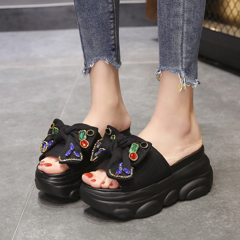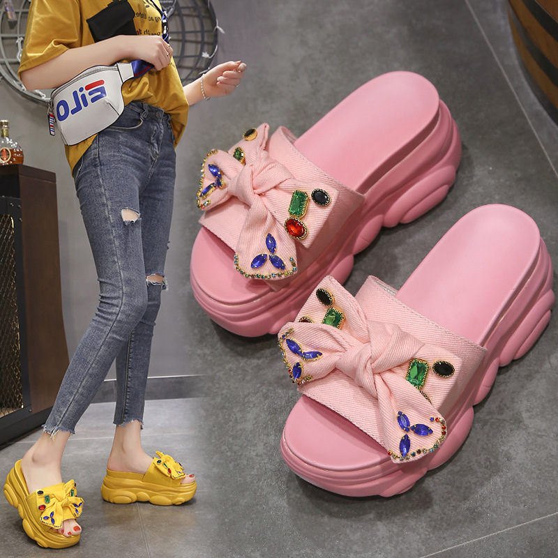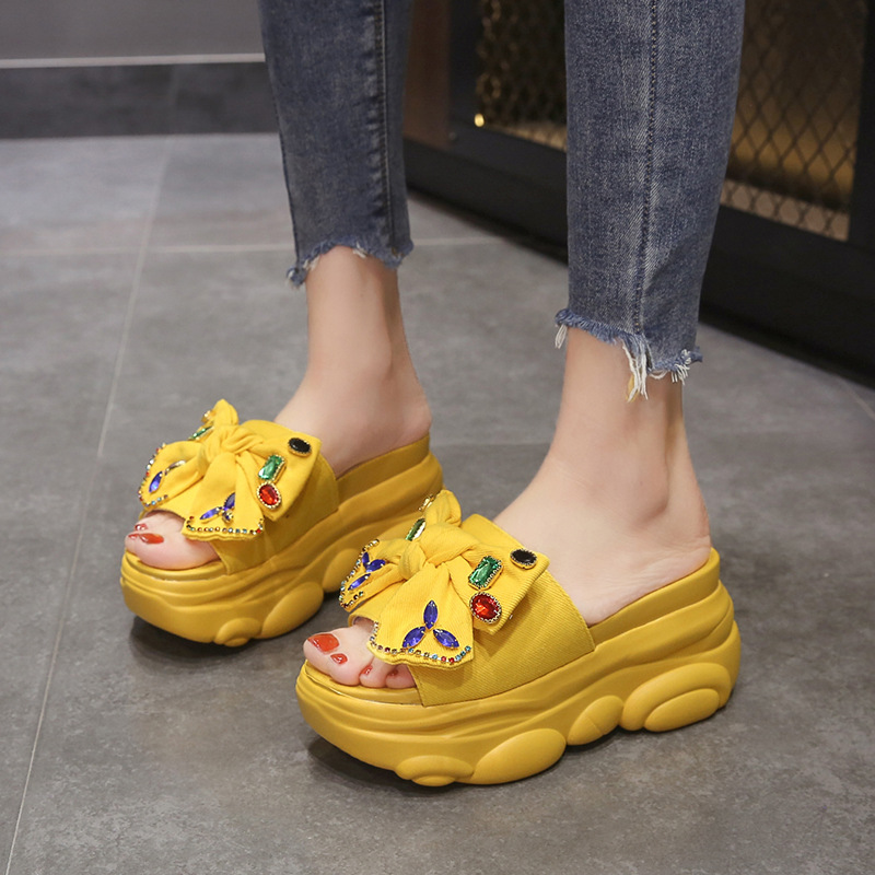 Material:PUStyle: fashion and simplicityFeatures: Rhinestones, BowsColour: yellow, black, beige, pink