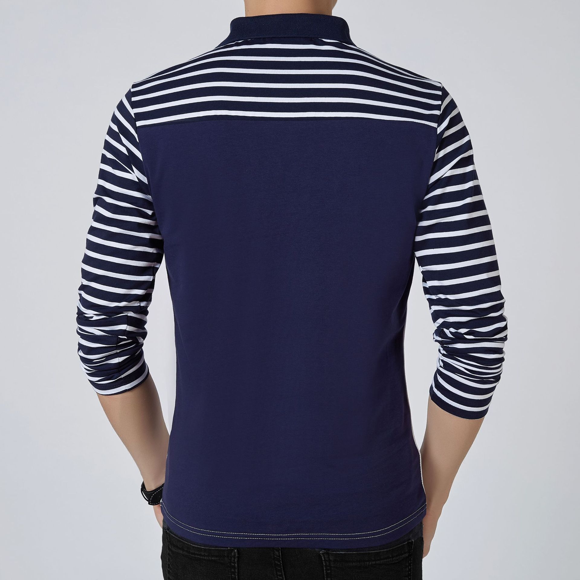 Men's stripe long sleeve polo collar top