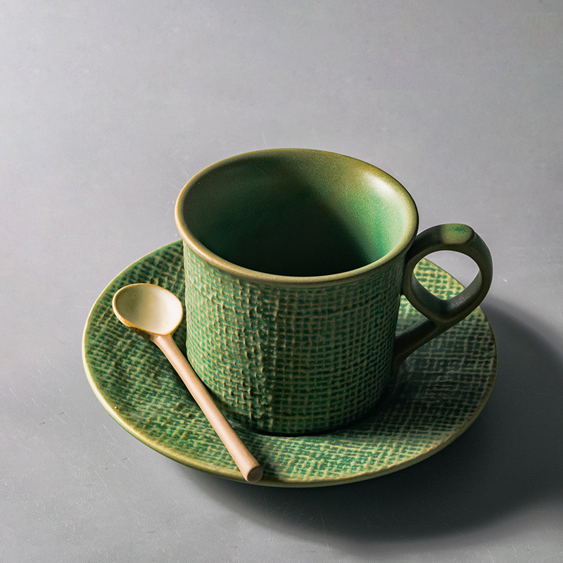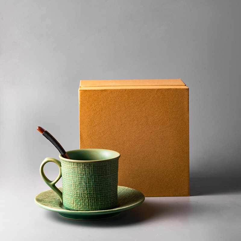 Color: green hemp pattern coffee cup, yellow hemp pattern coffee cup, green hemp pattern coffee cup + coffee spoon, yellow hemp pattern coffee cup + coffee spoon, green hemp pattern coffee cup + black tangled nanmu coffee spoon + gift box, yellow hemp pattern Coffee cup + black tangled nanmu coffee spoon + gift box